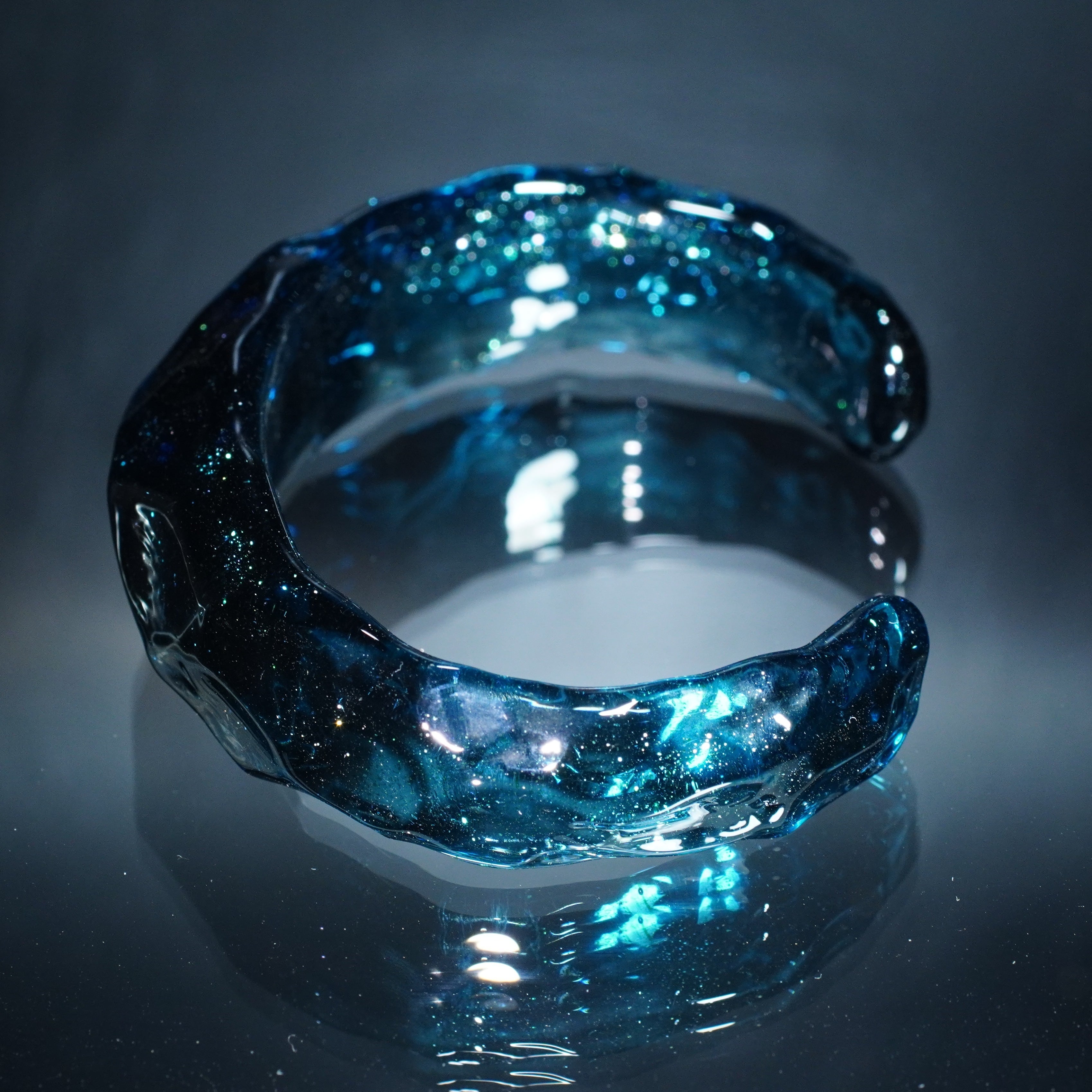 氷をイメージして制作した硬質ガラス製のバングルです。