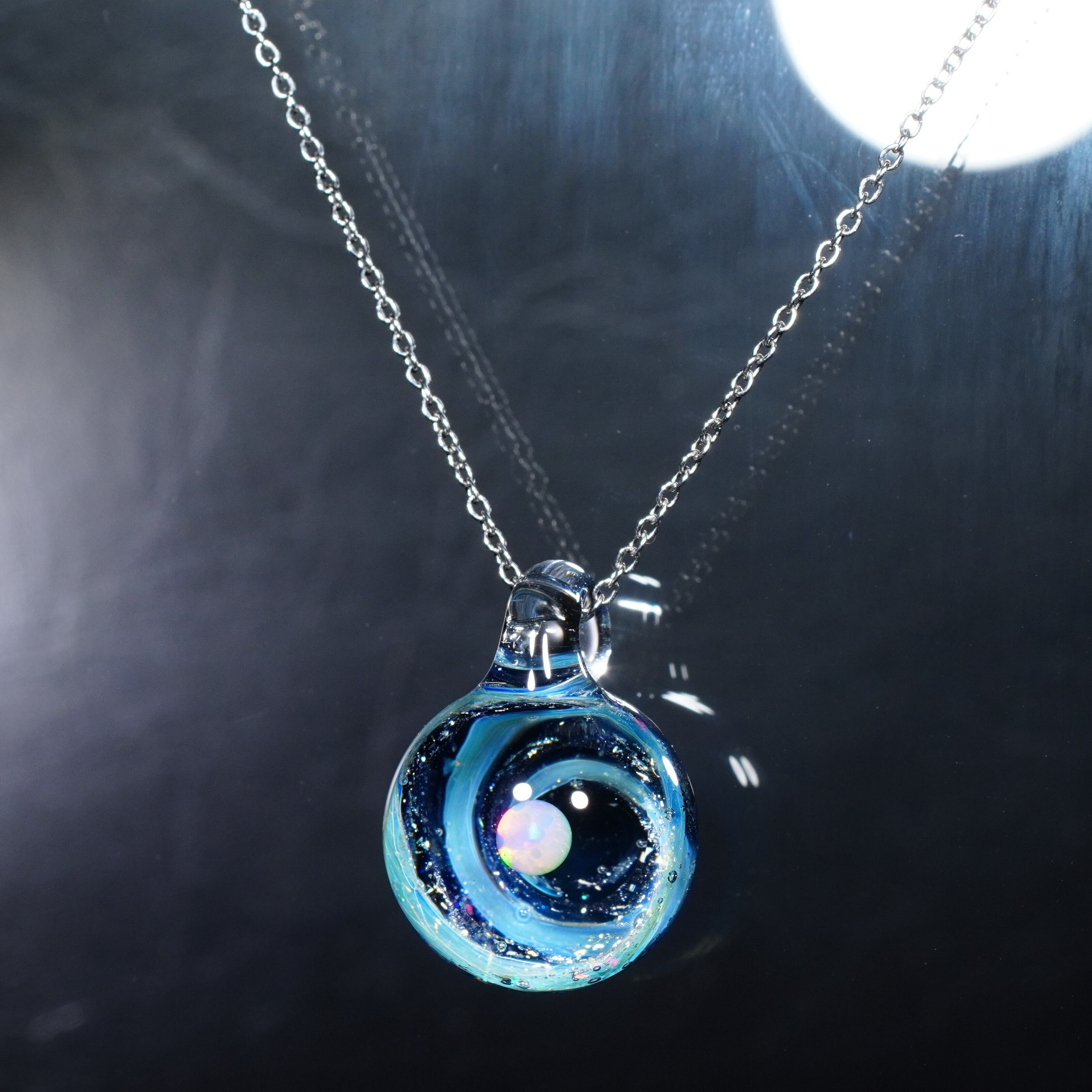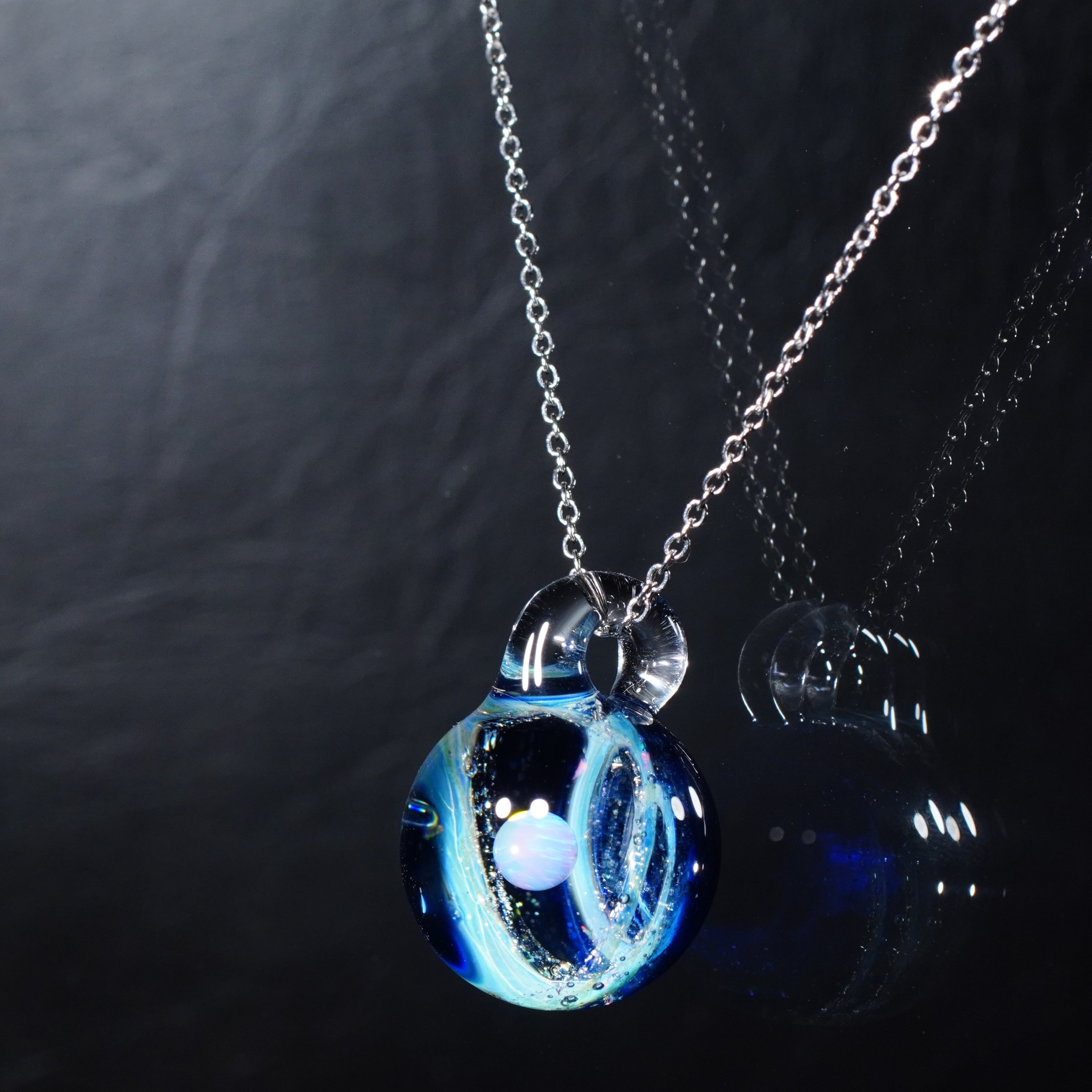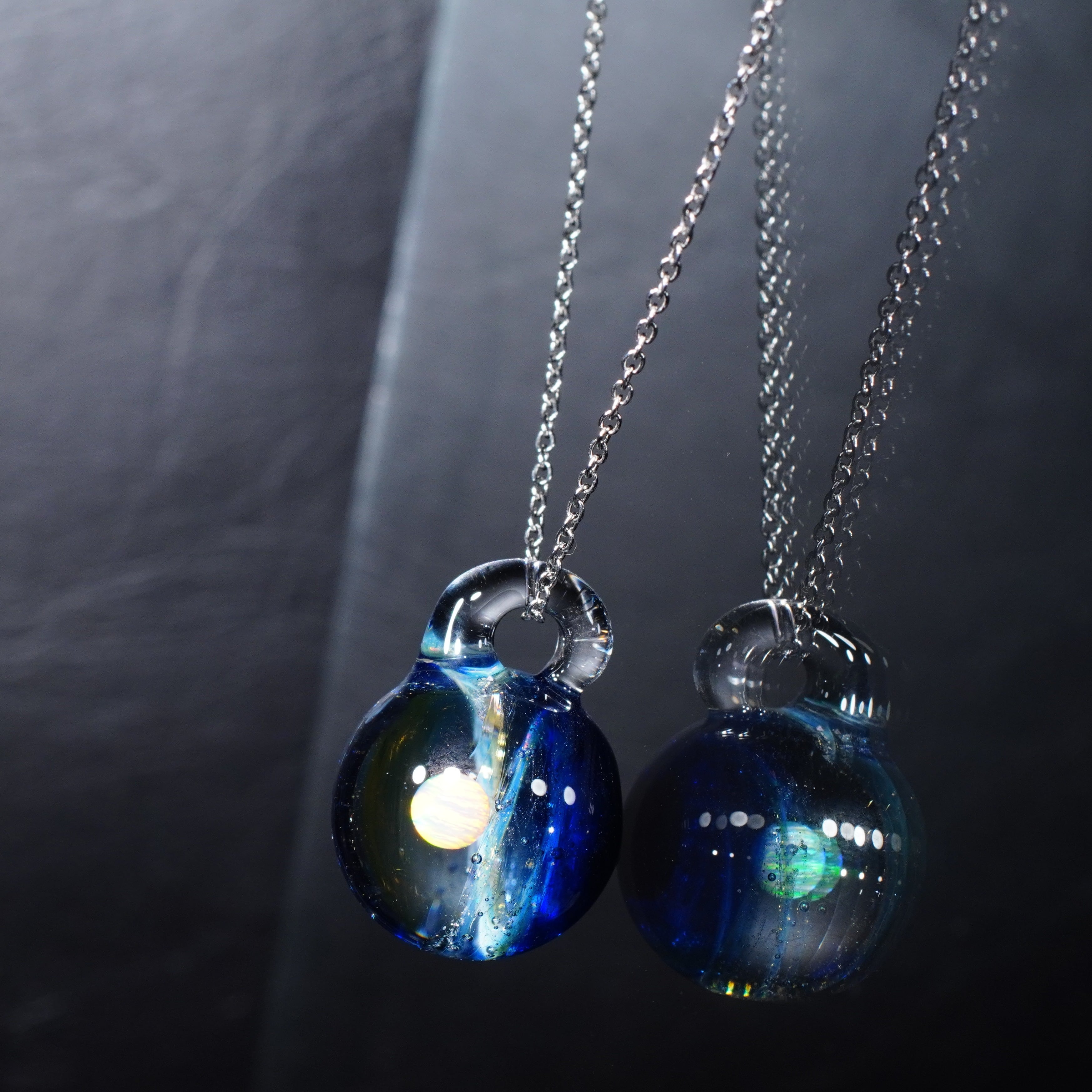 宇宙に浮かぶ惑星をイメージして制作した硬質ガラス製のペンダントです。