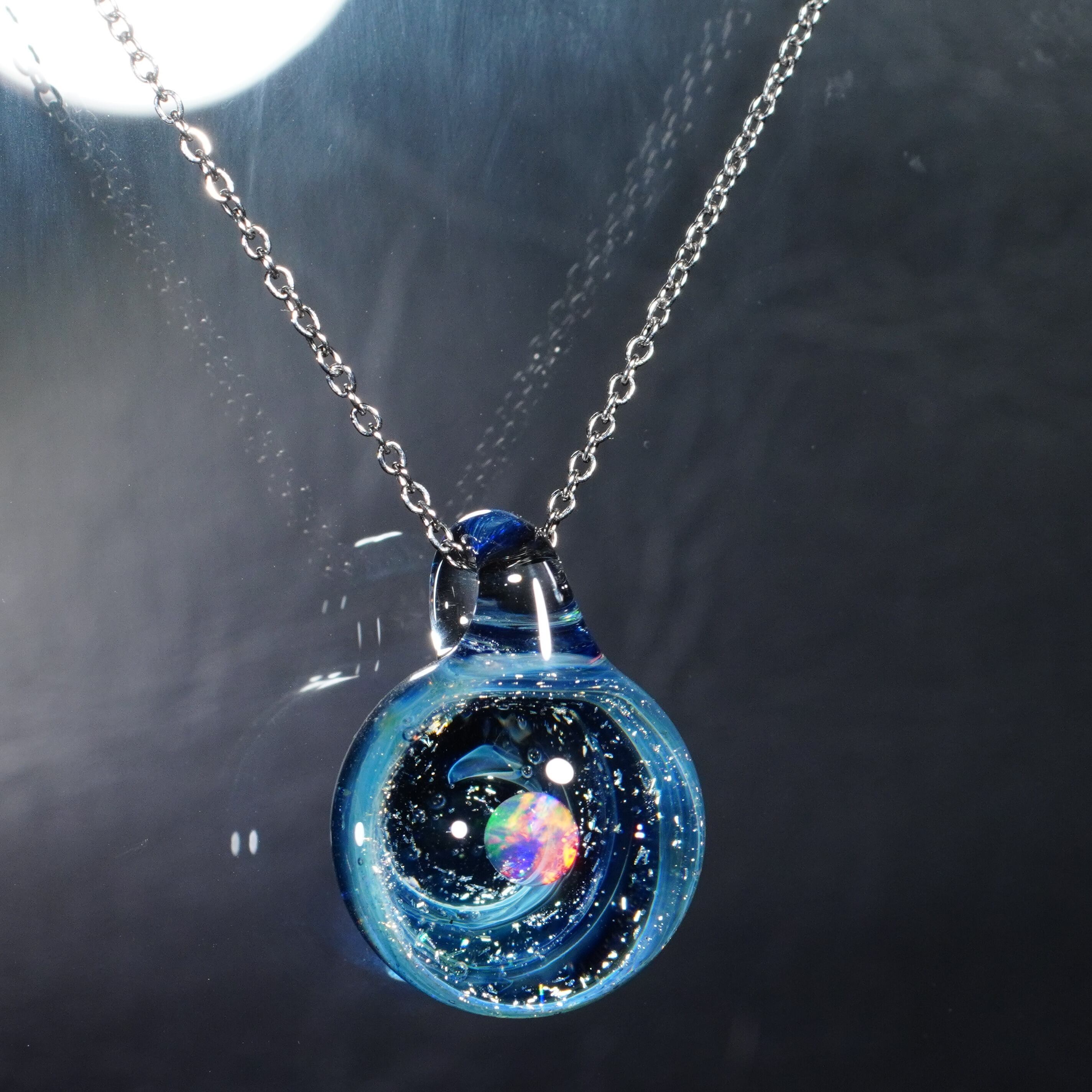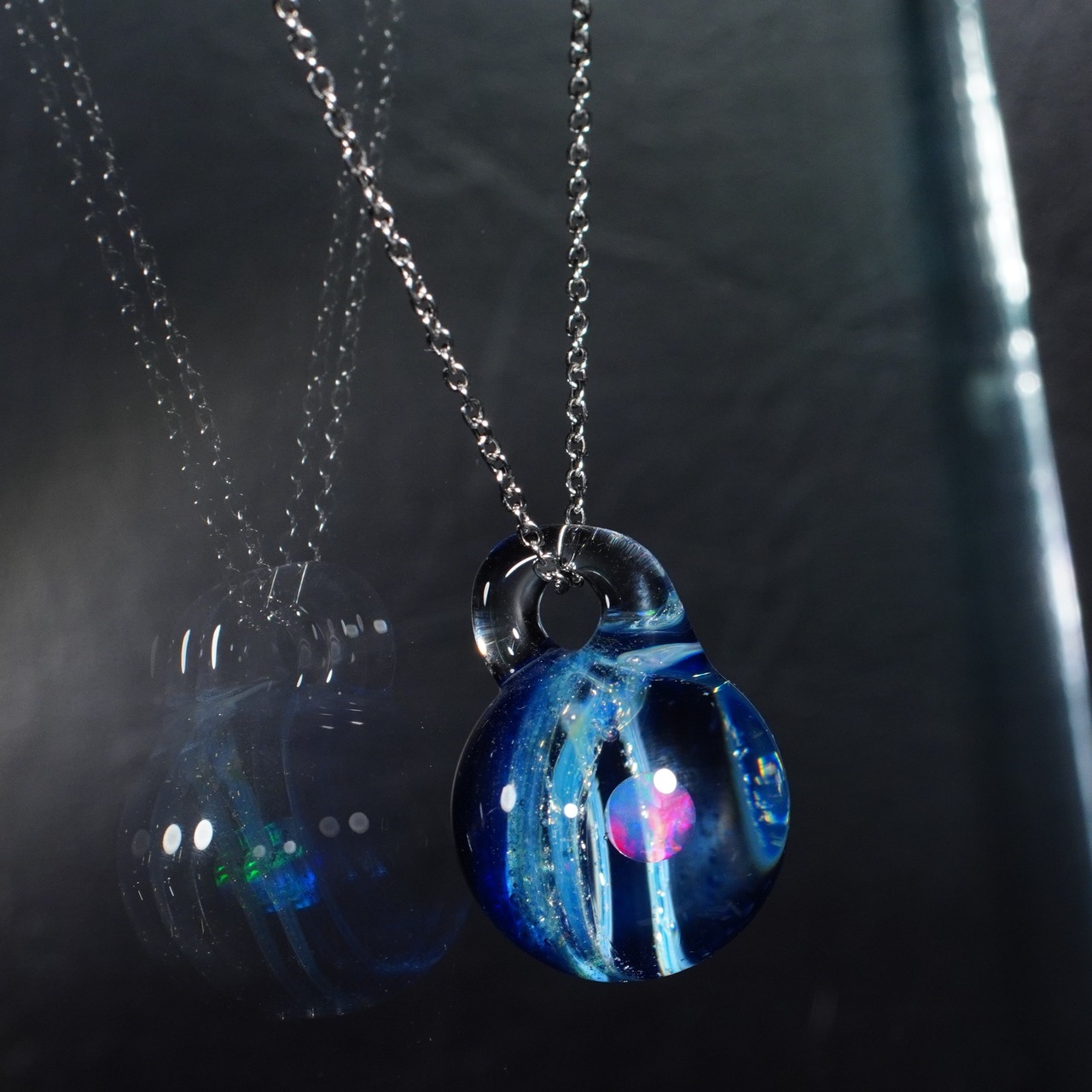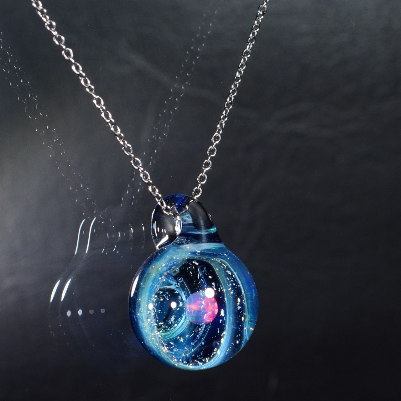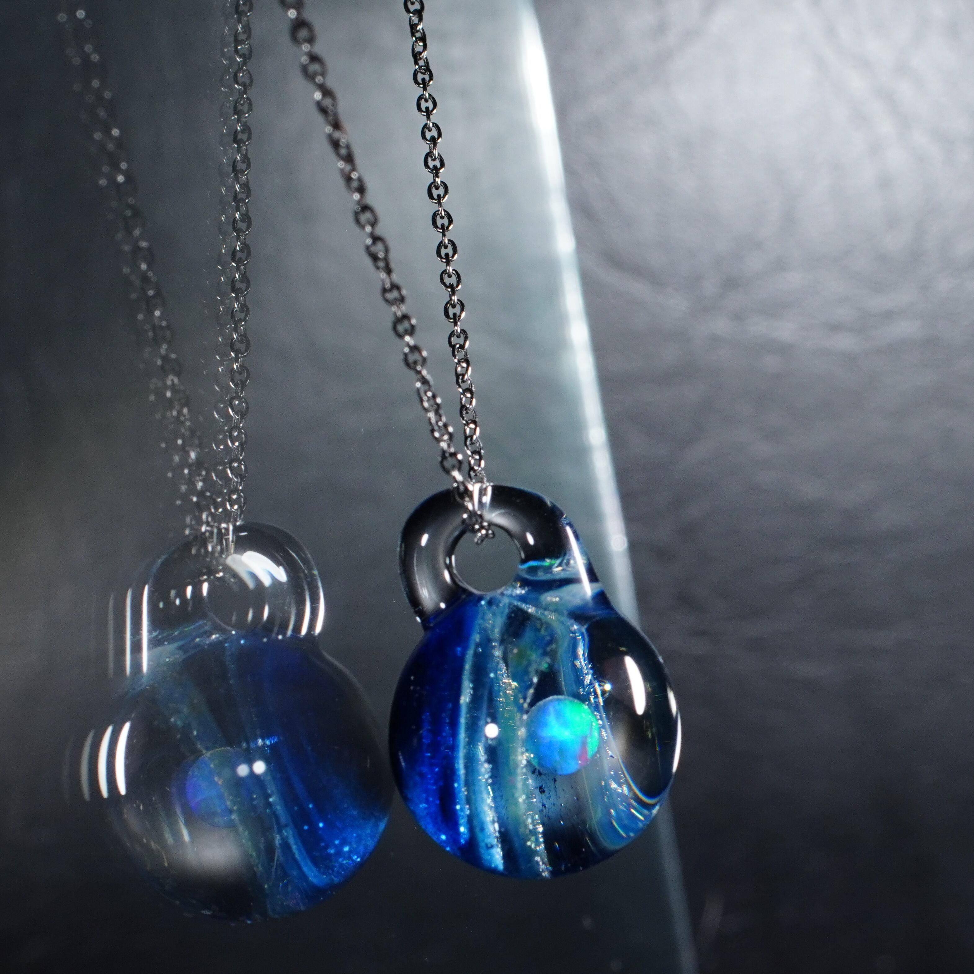 宇宙に浮かぶ惑星をイメージして制作した硬質ガラス製のペンダントです。