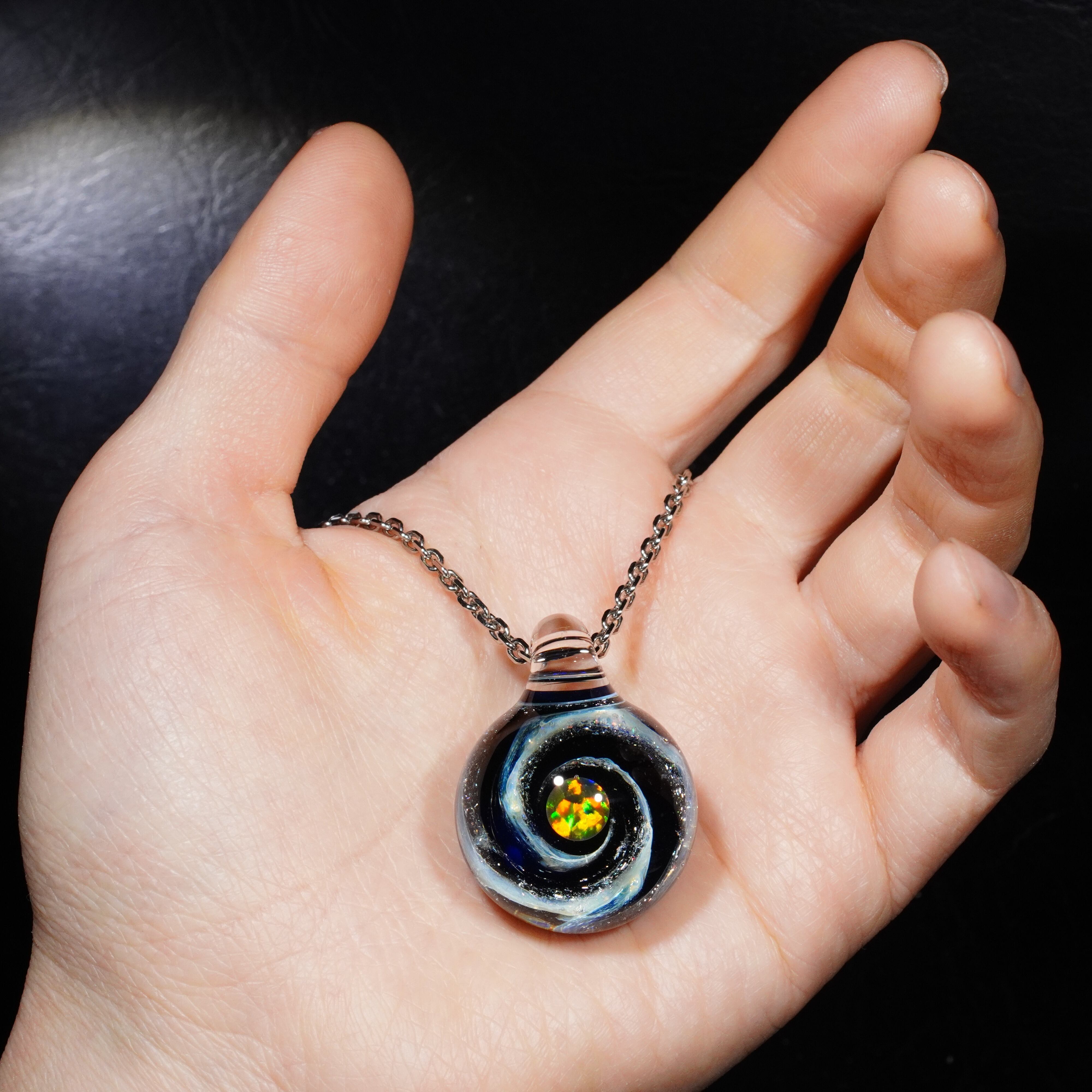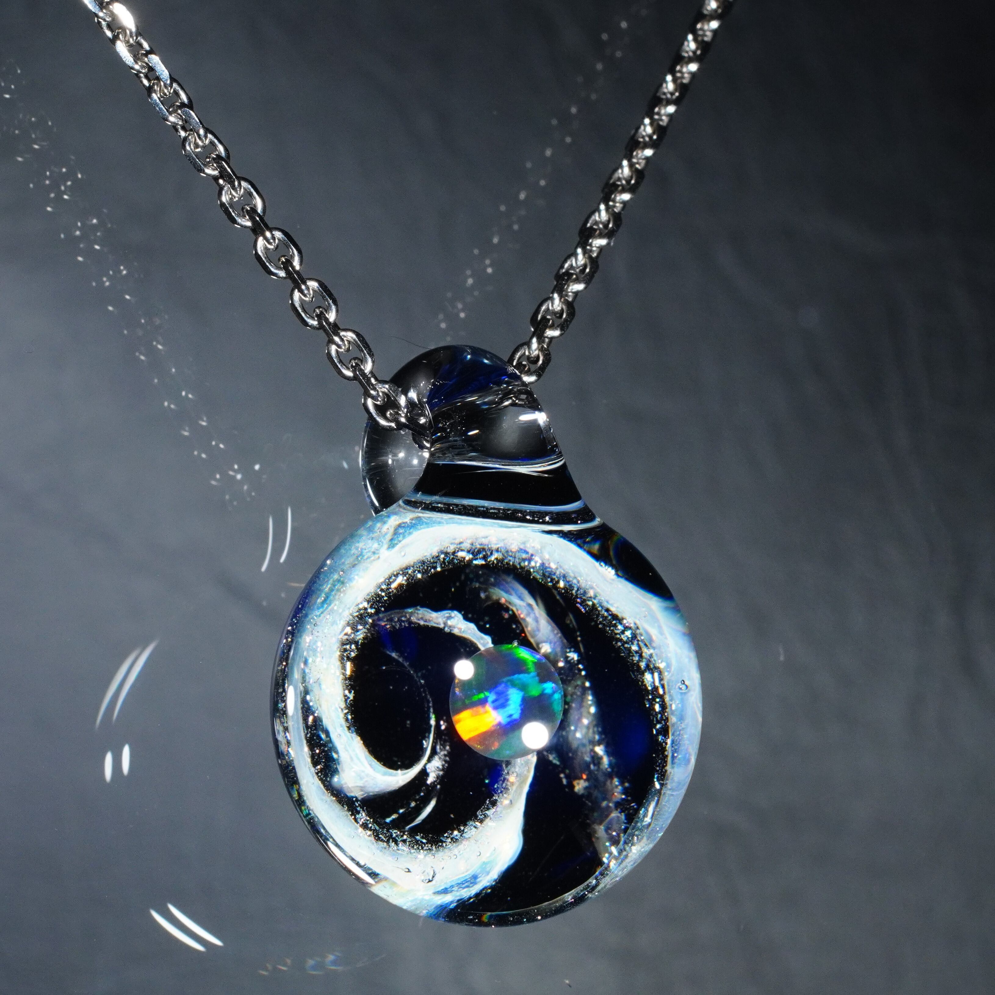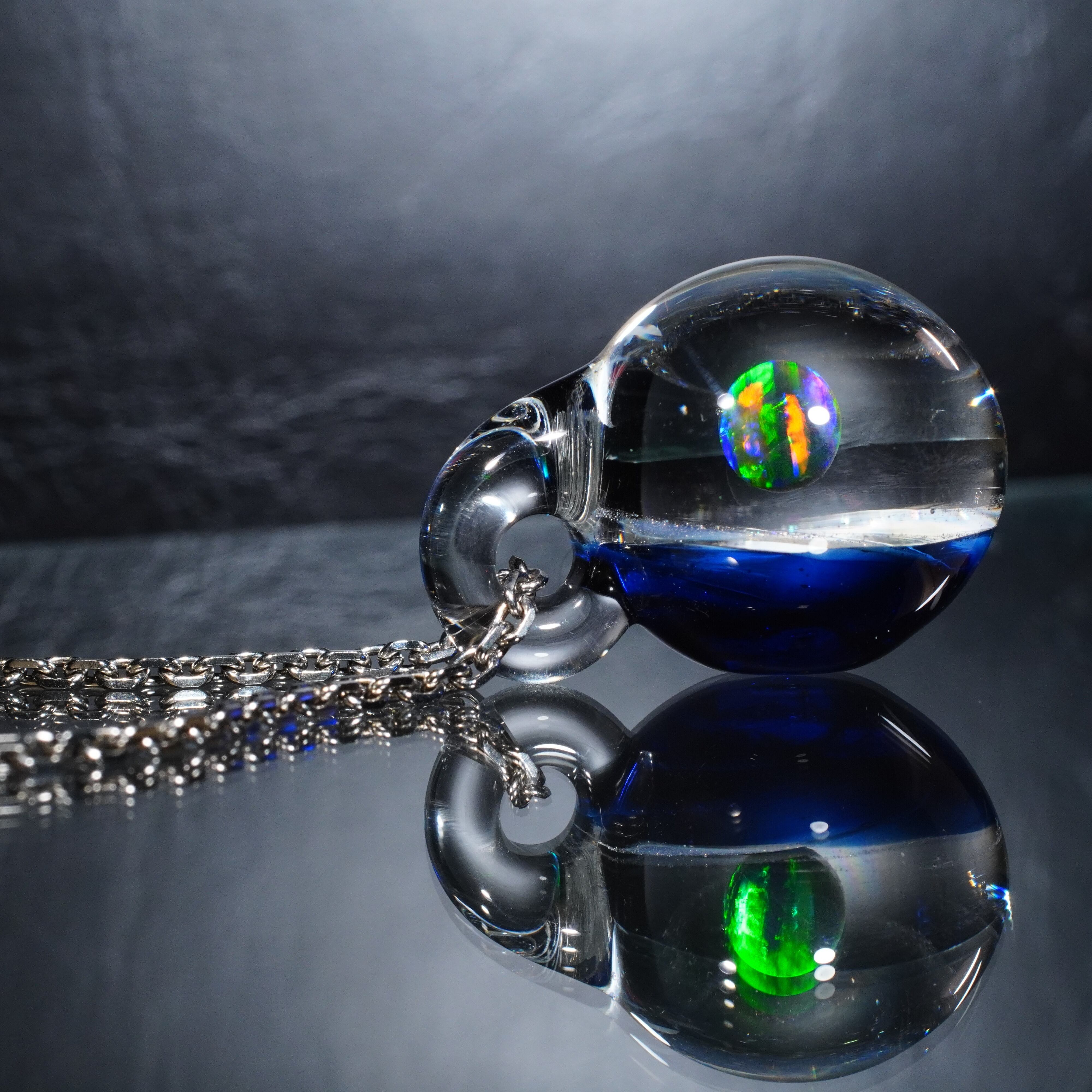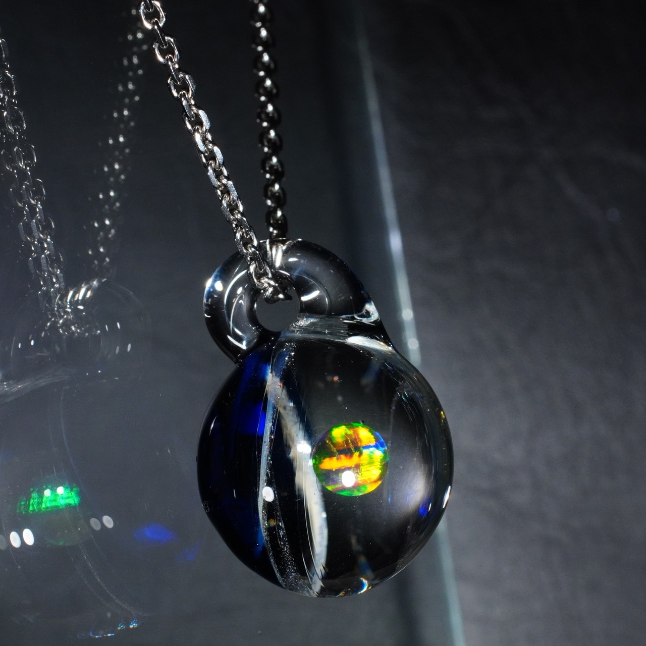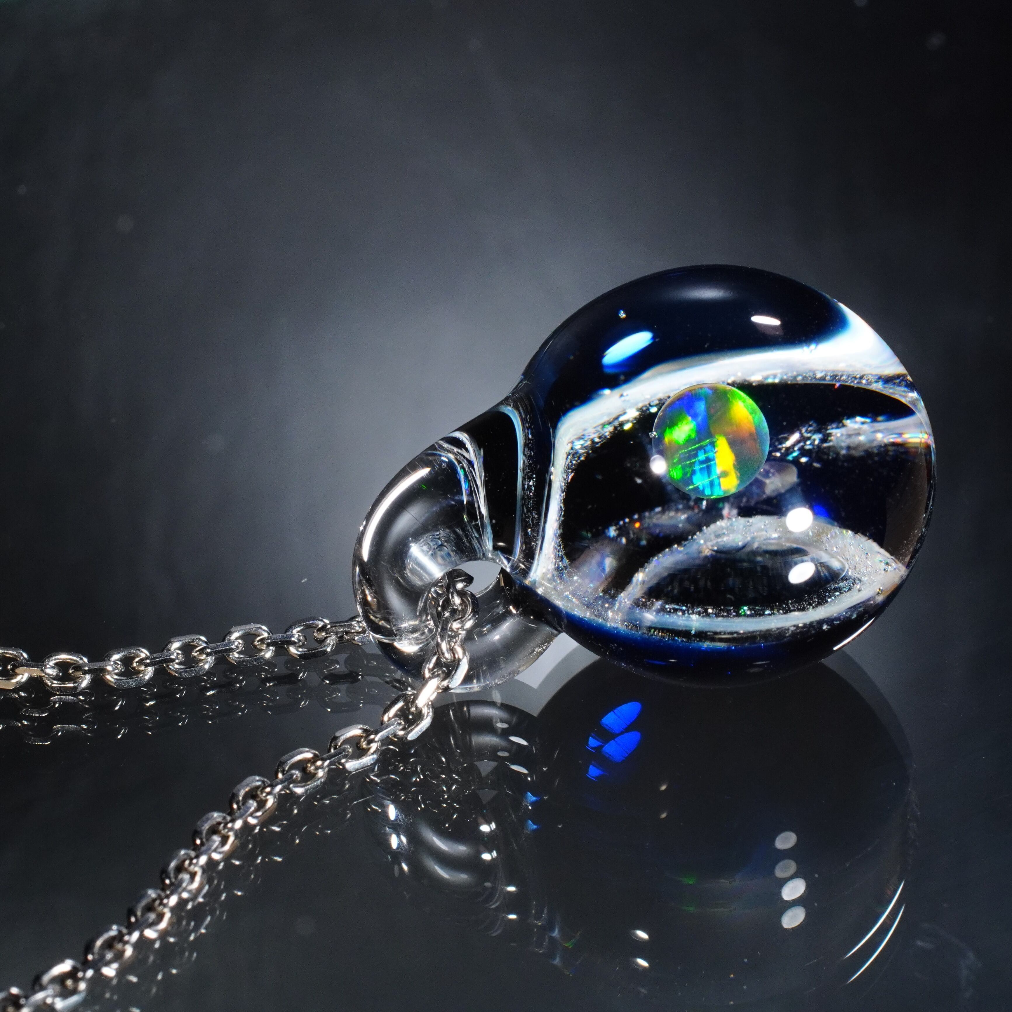 宇宙に浮かぶ惑星をイメージして制作した硬質ガラス製のペンダントです。