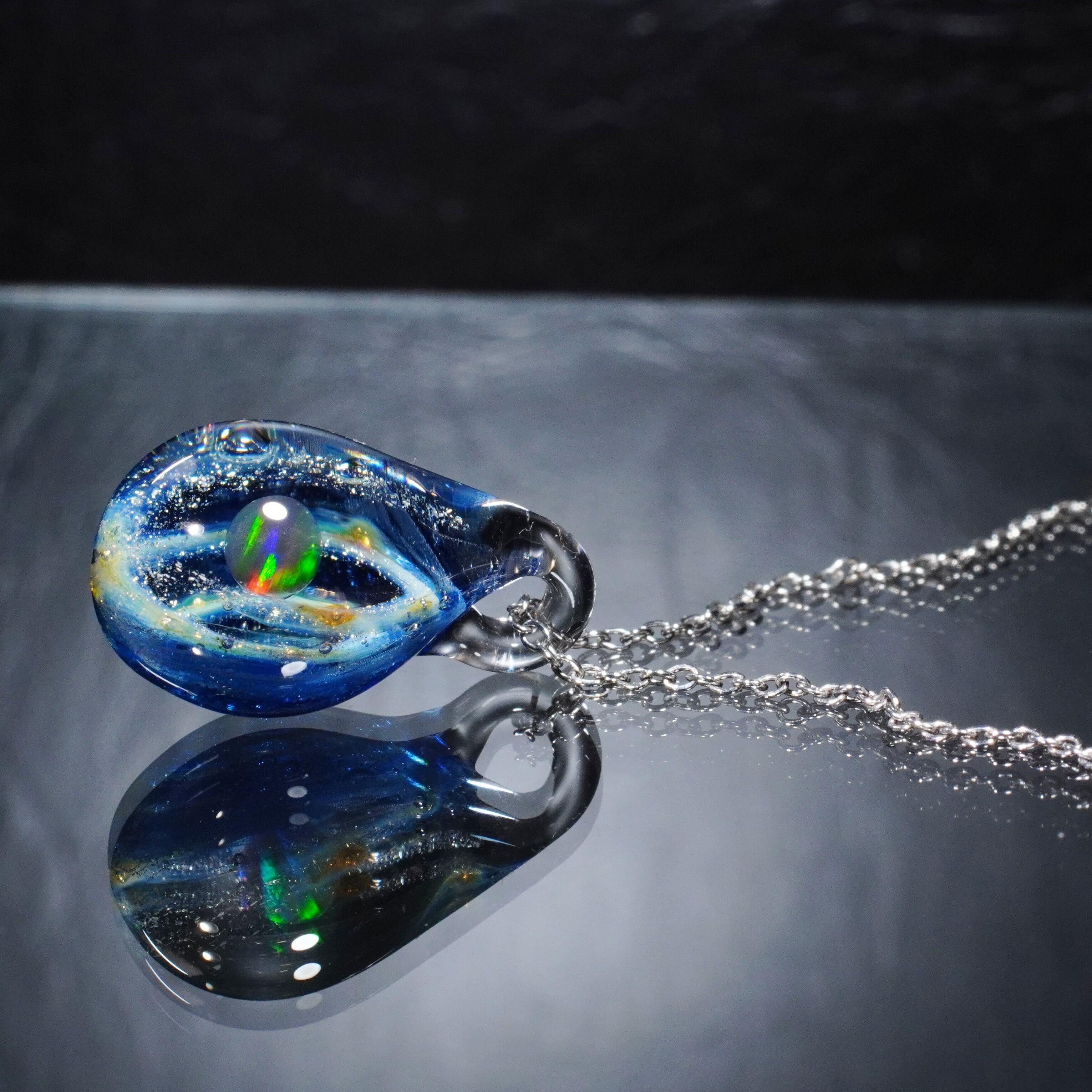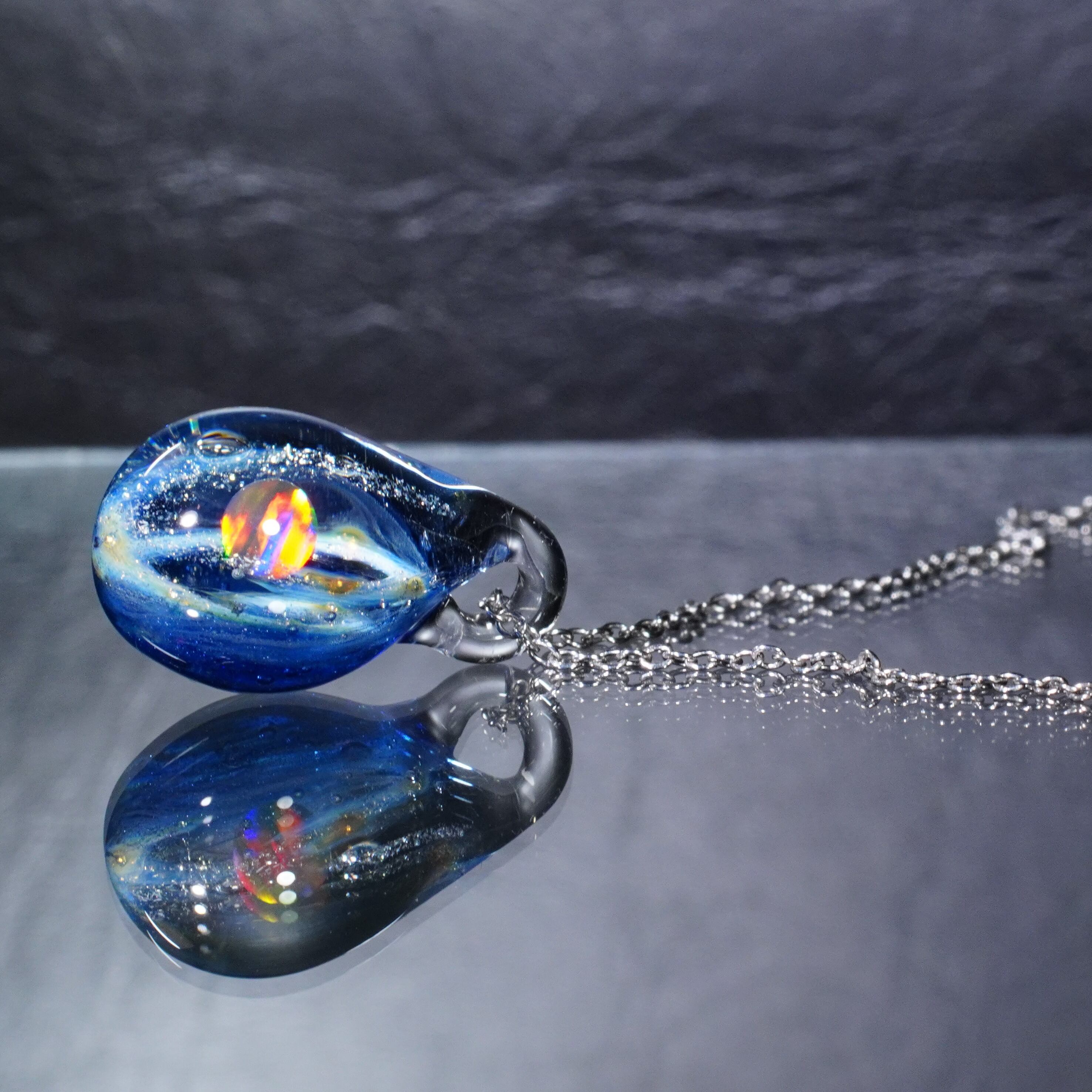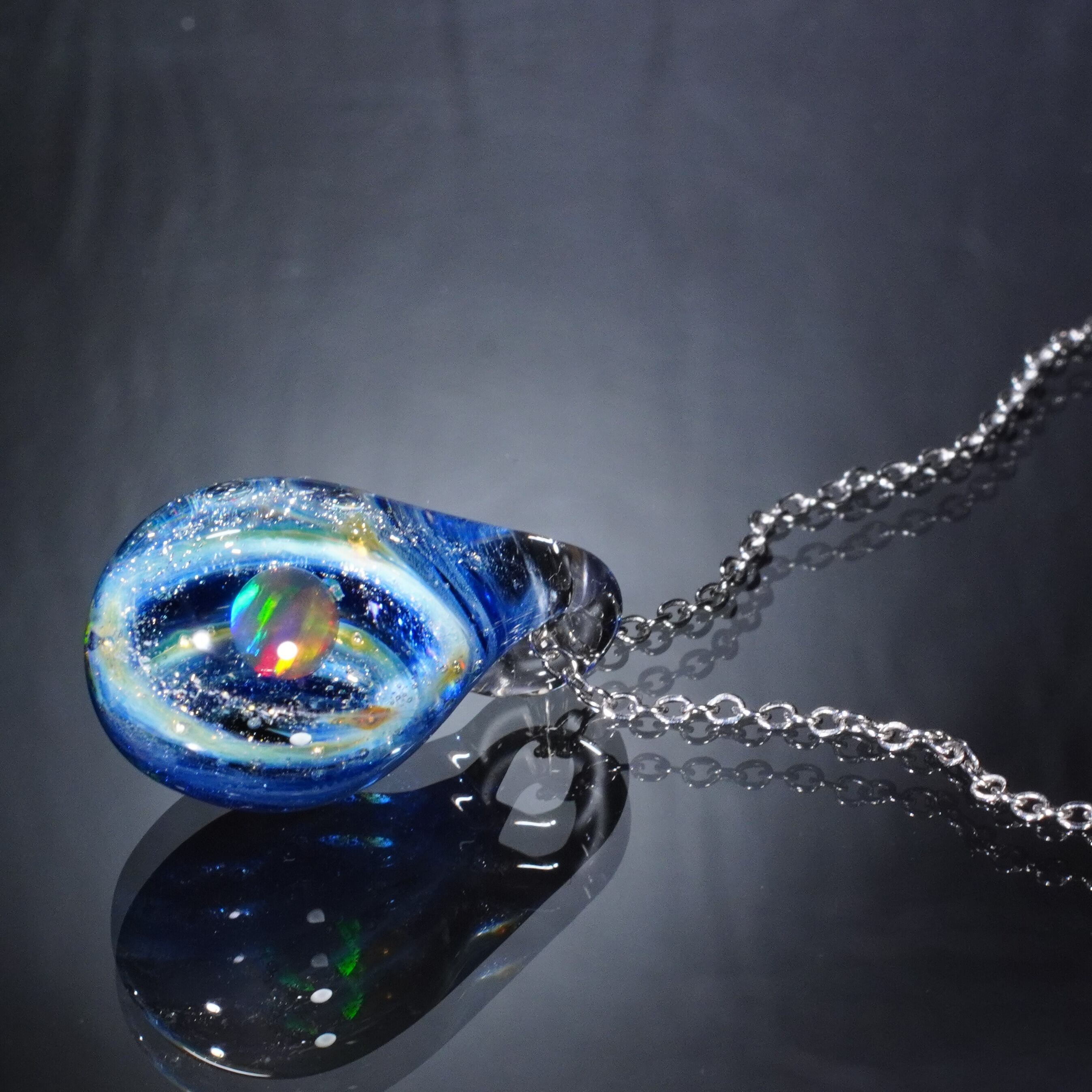 宇宙に浮かぶ惑星をイメージして制作した硬質ガラス製のペンダントです。