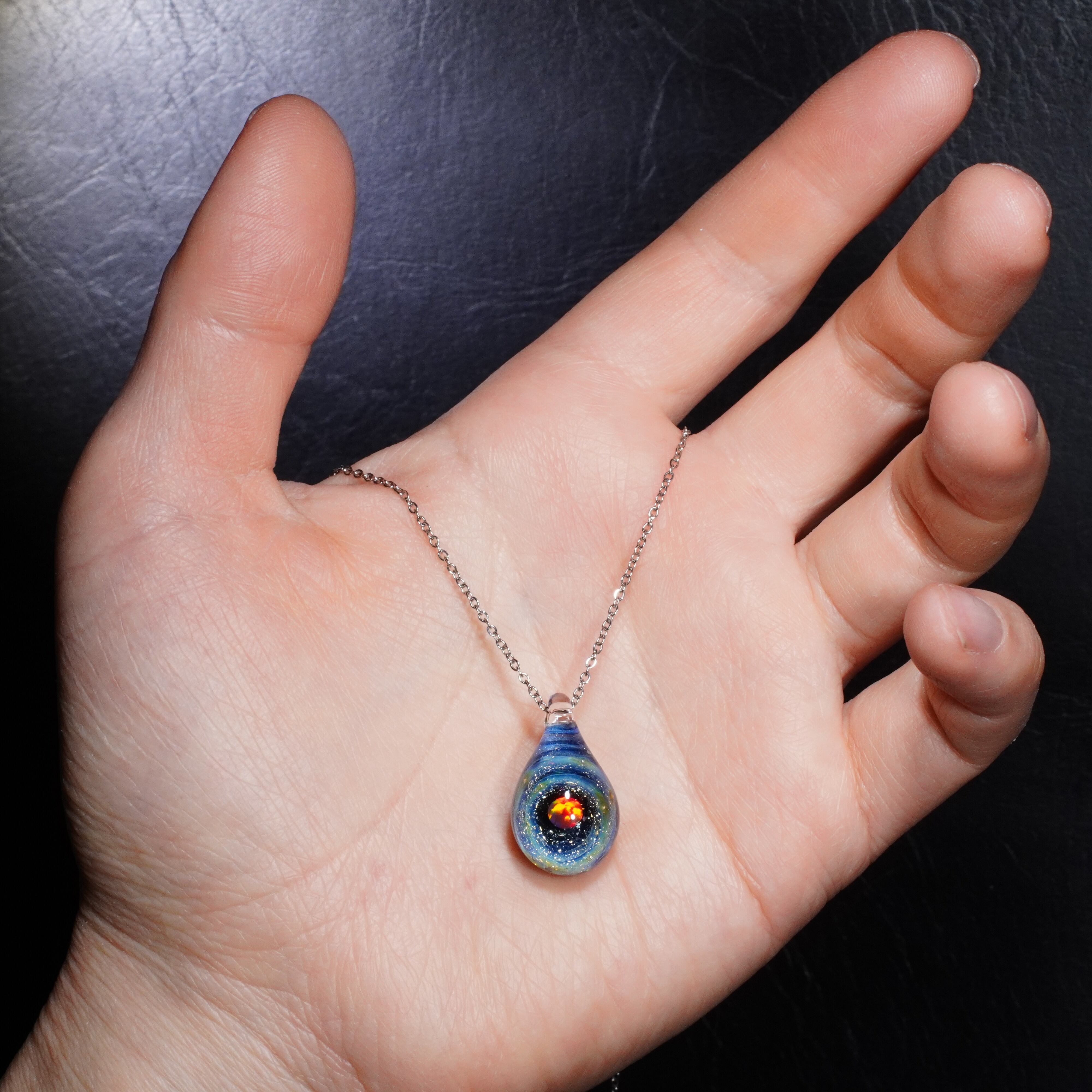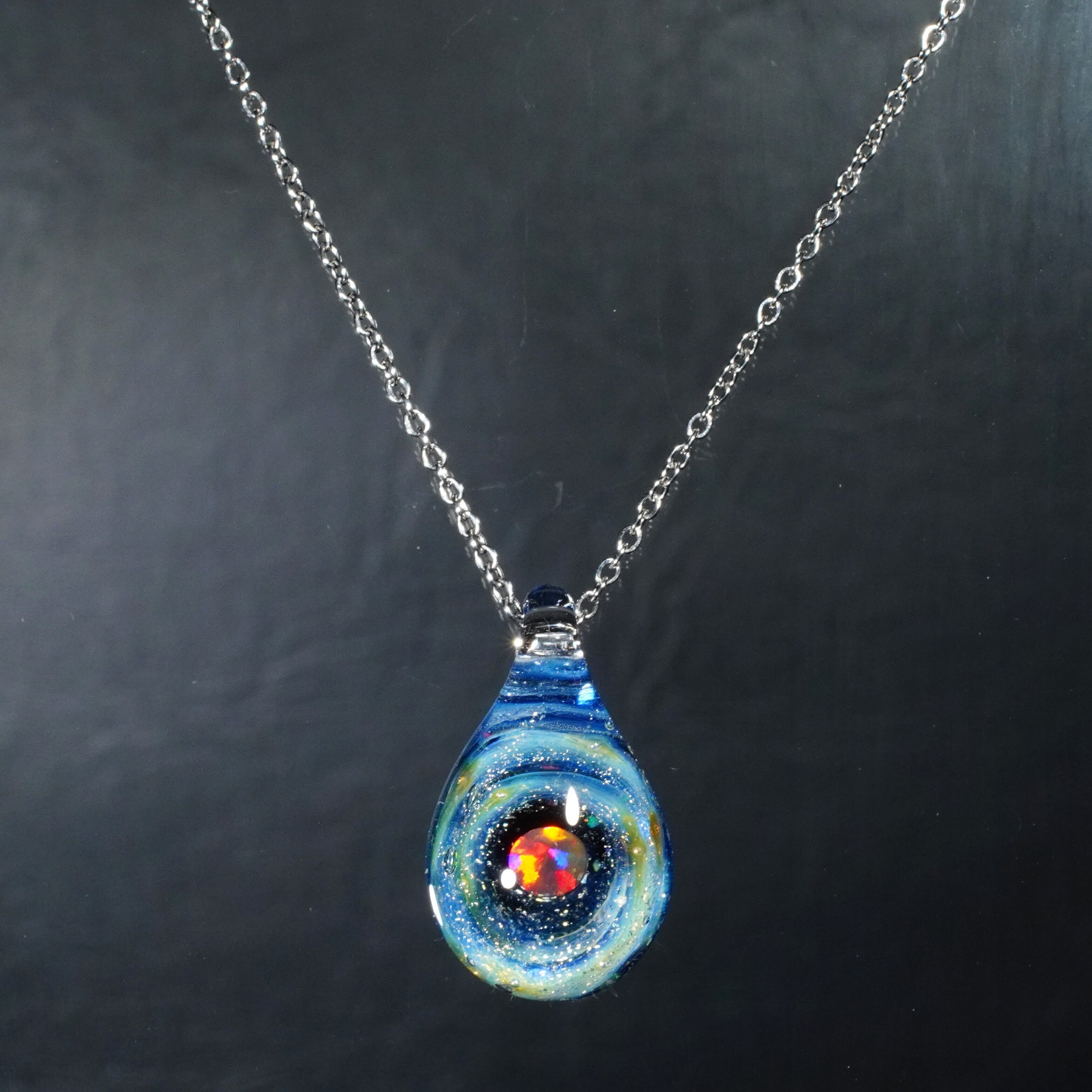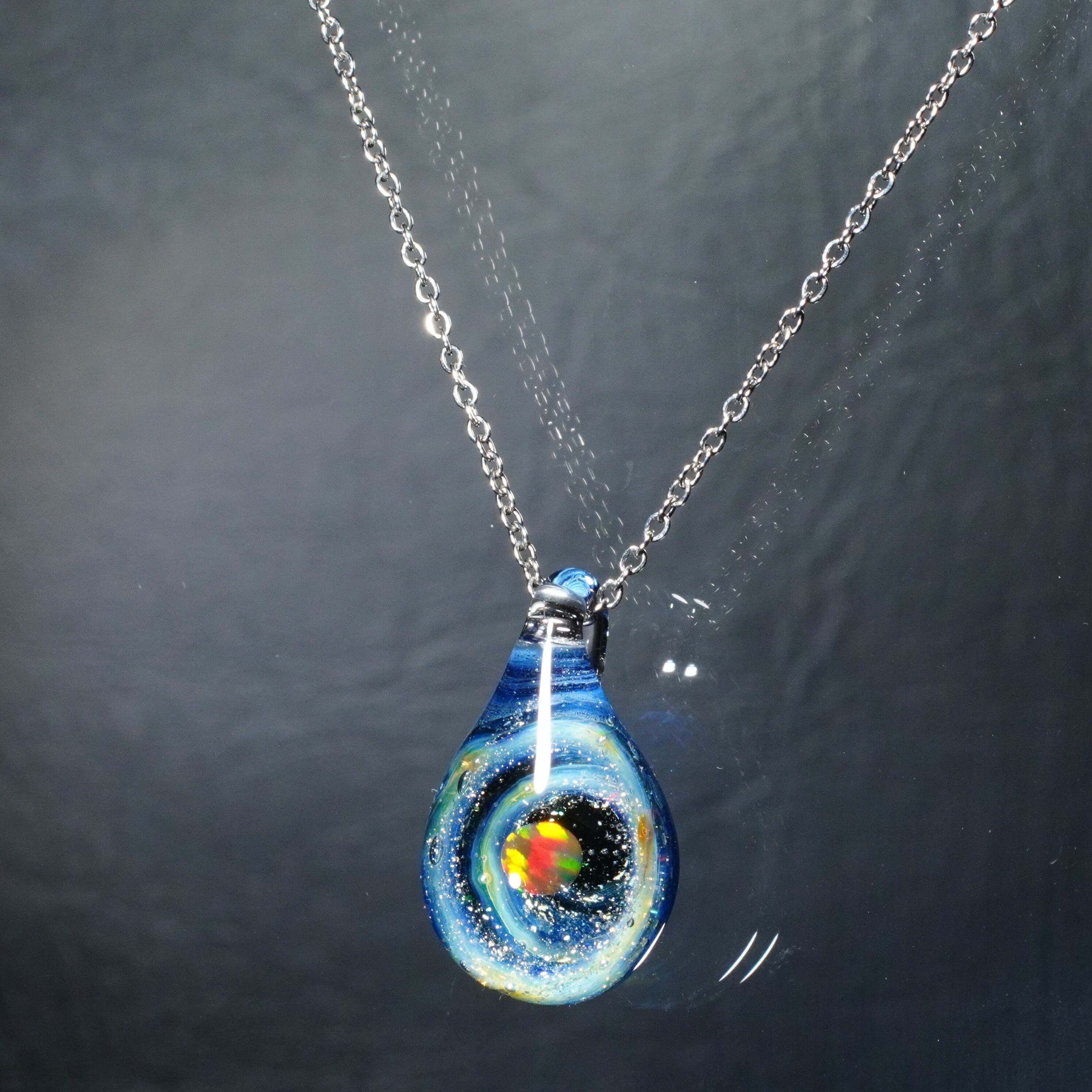 宇宙に浮かぶ惑星をイメージして制作した硬質ガラス製のペンダントです。