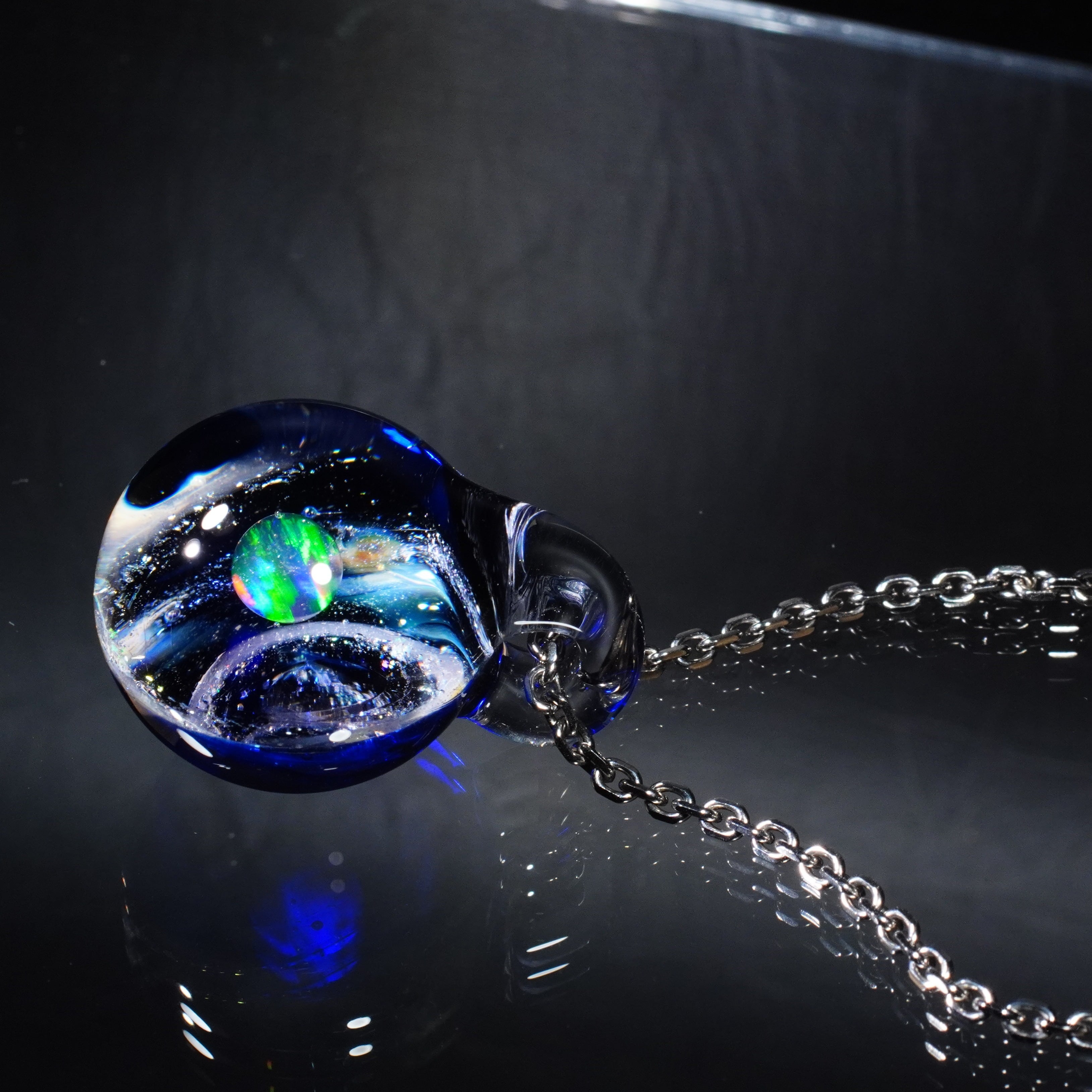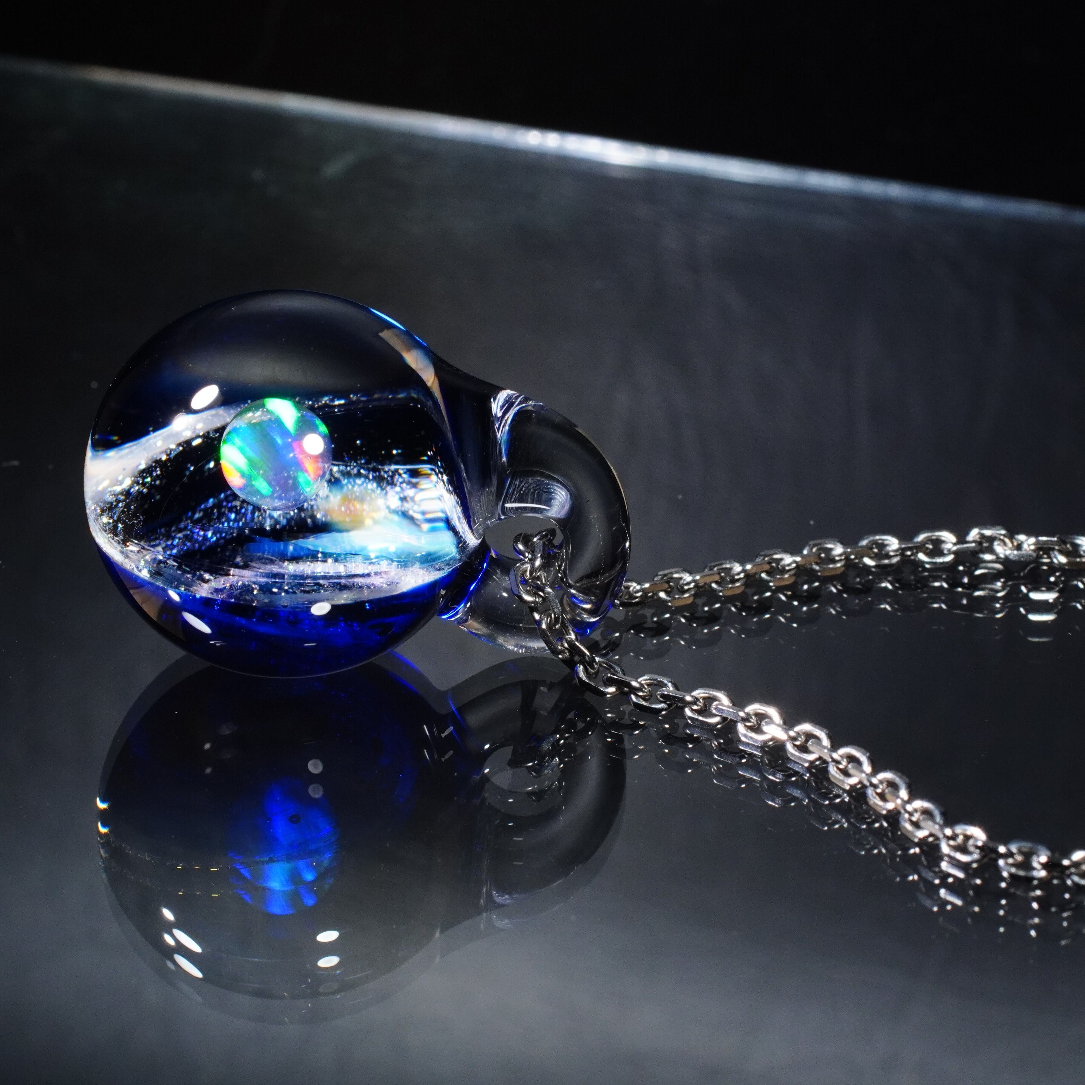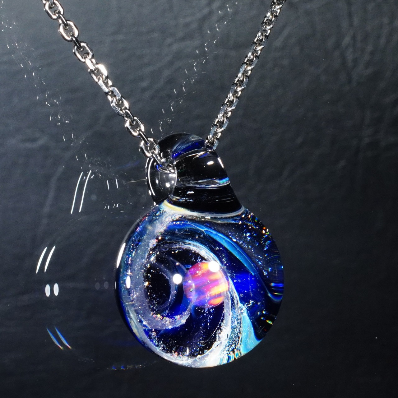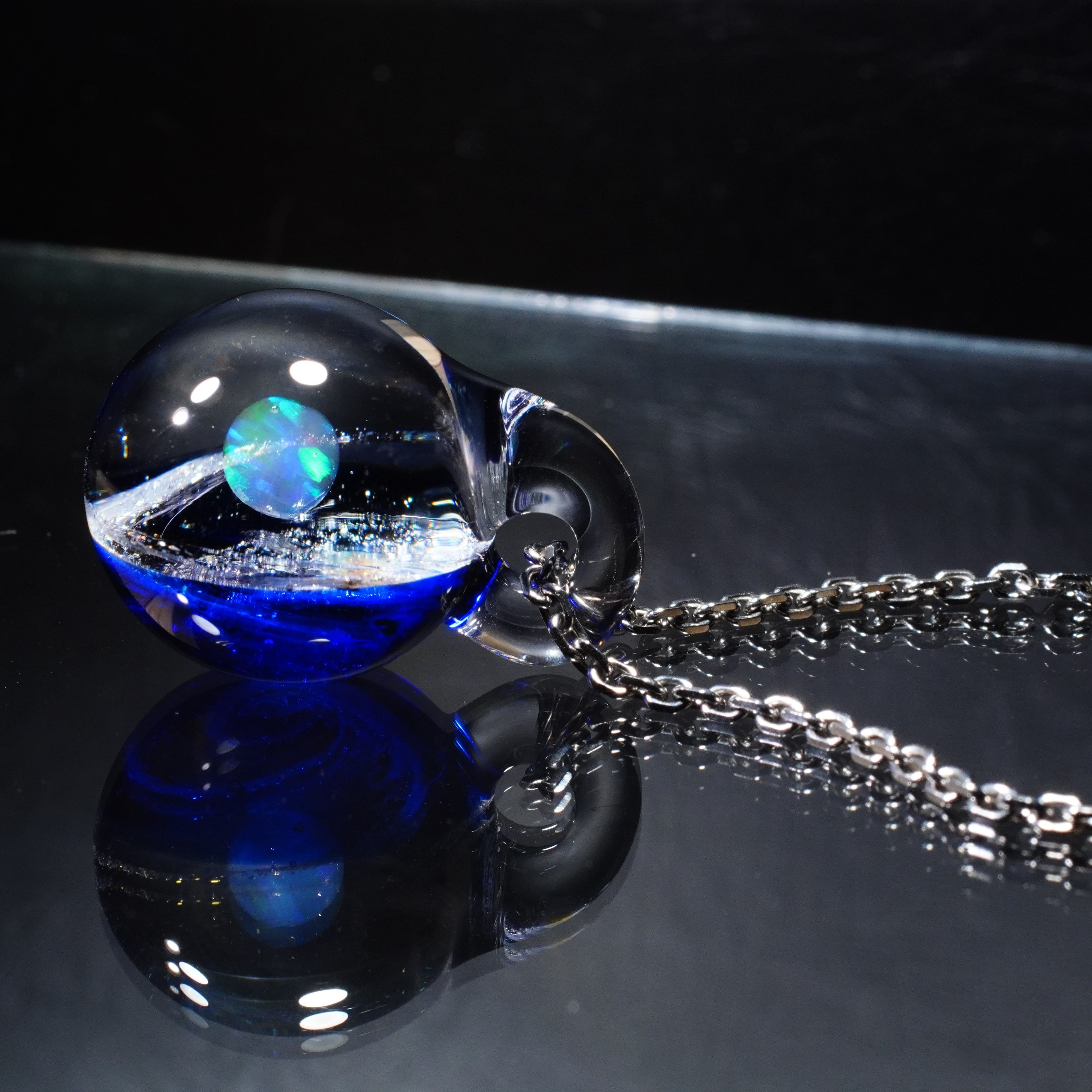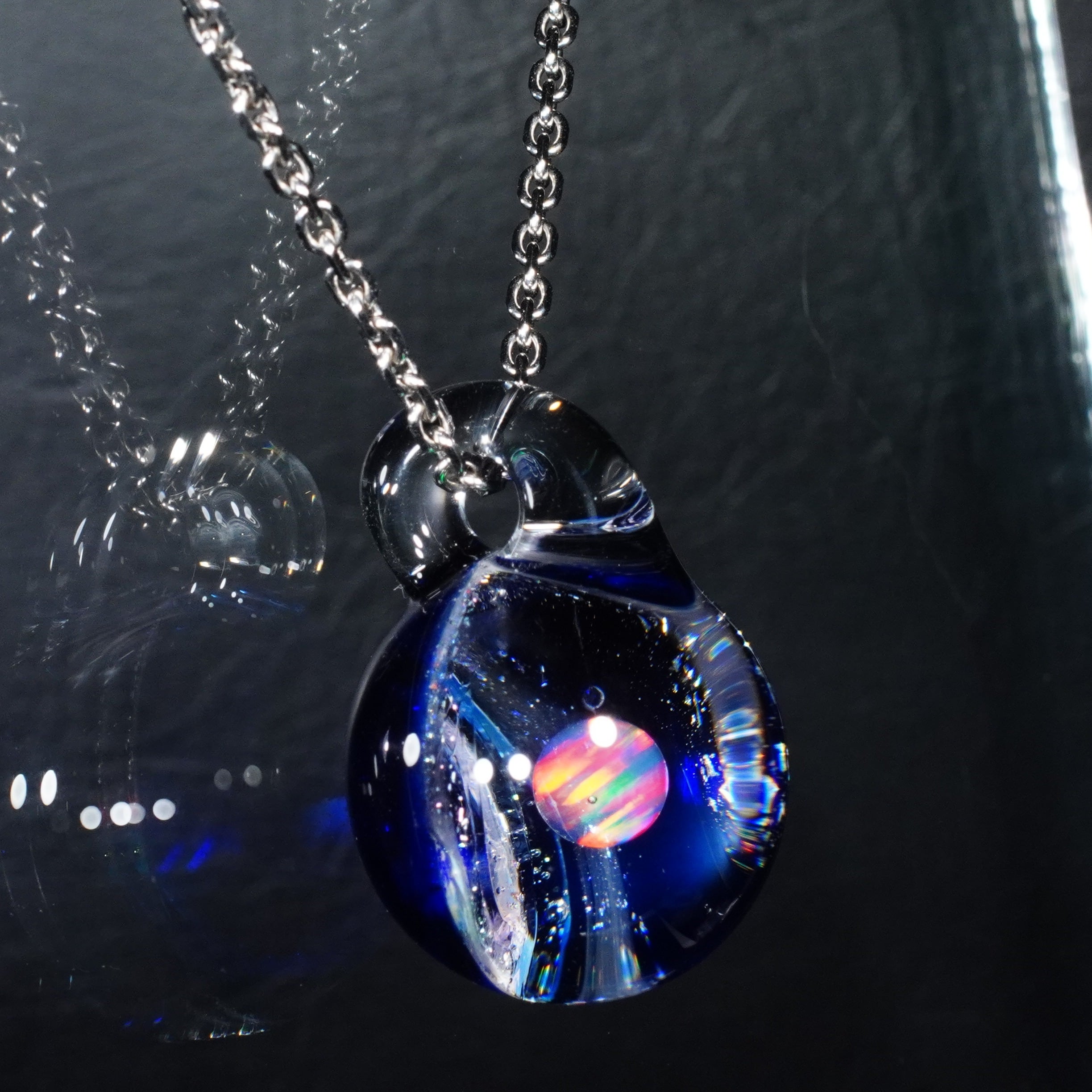 宇宙に浮かぶ惑星をイメージして制作した硬質ガラス製のペンダントです。