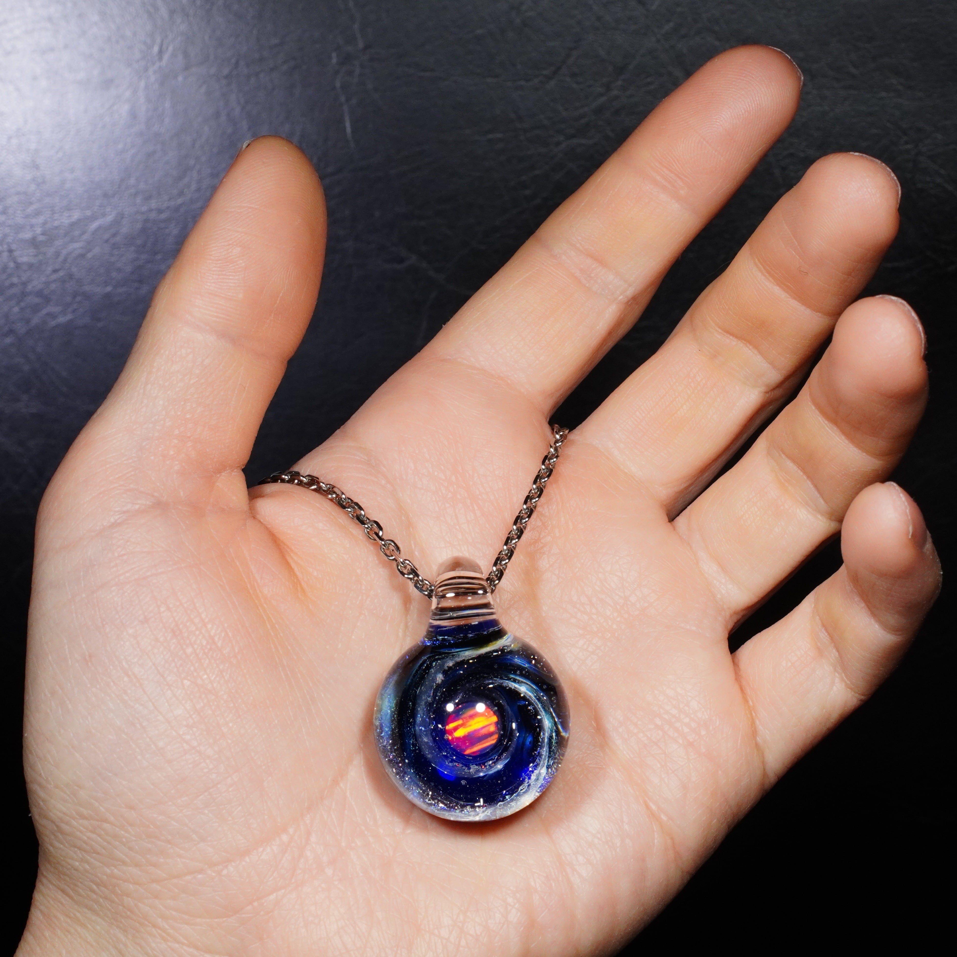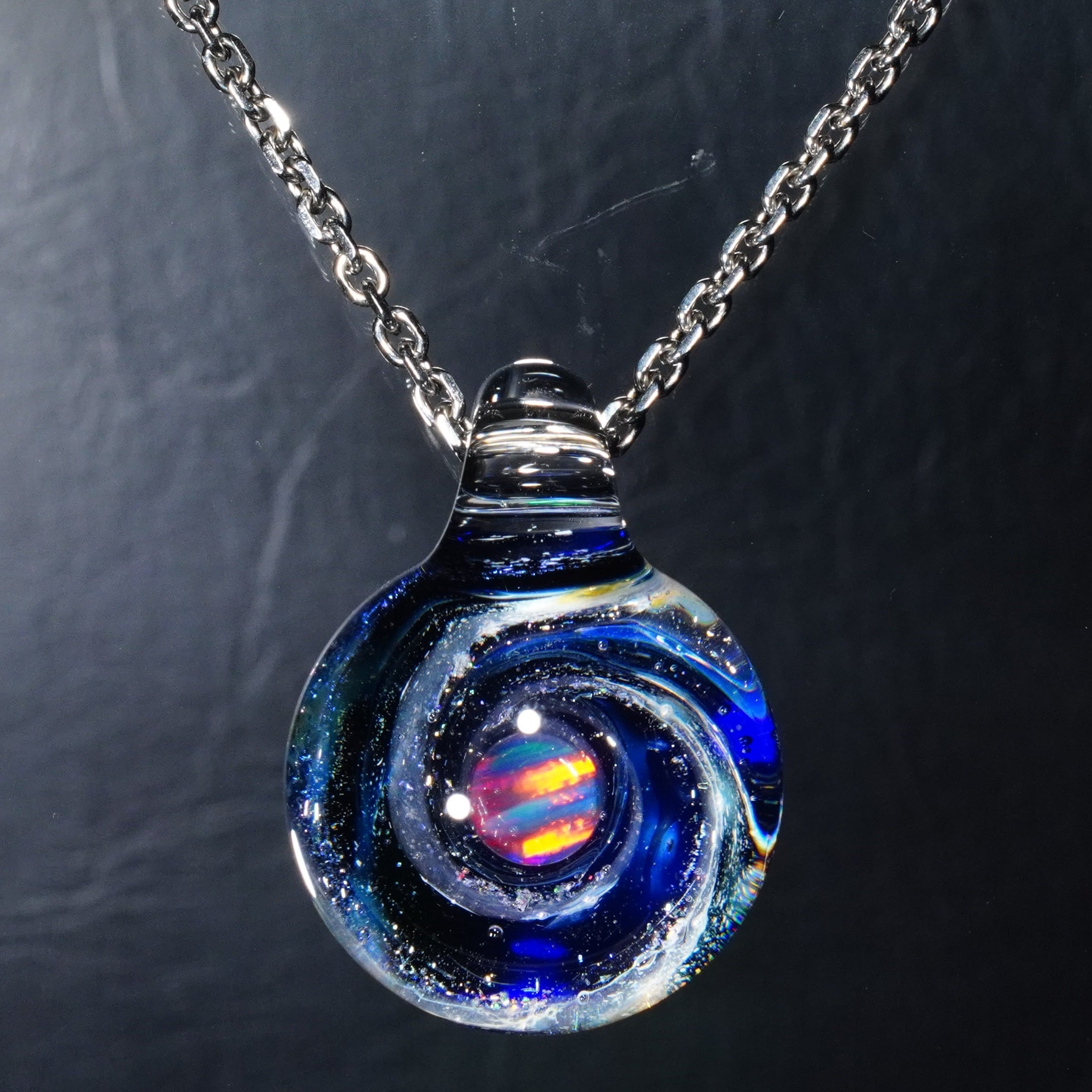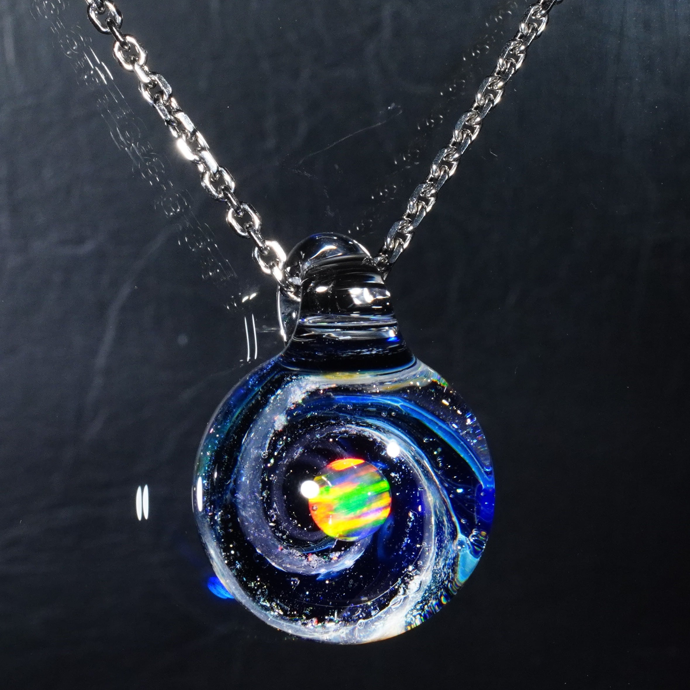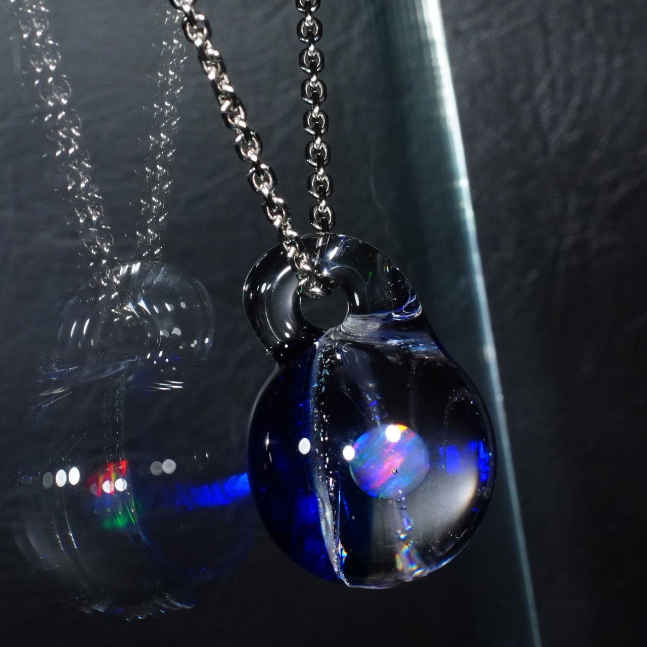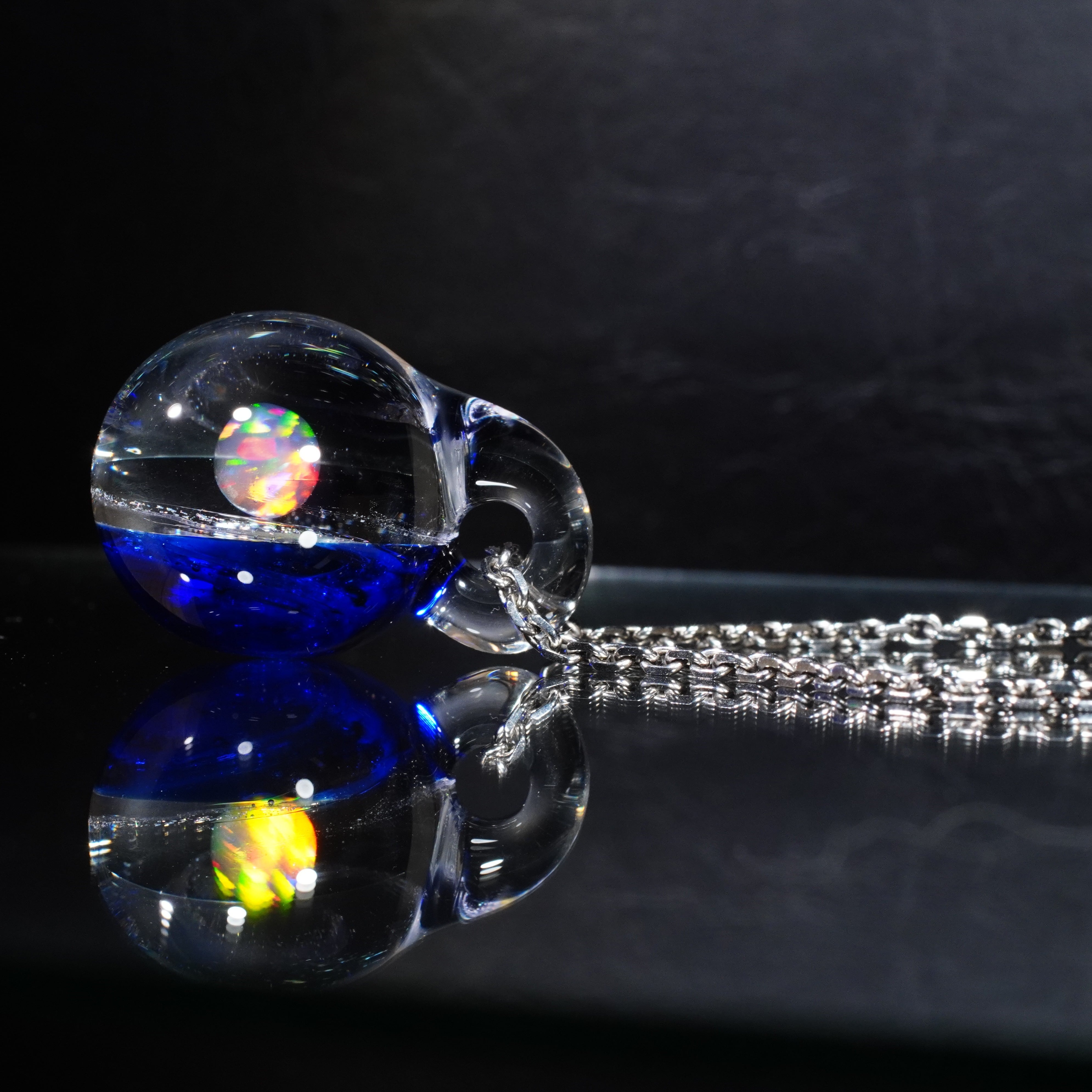 宇宙に浮かぶ惑星をイメージして制作した硬質ガラス製のペンダントです。