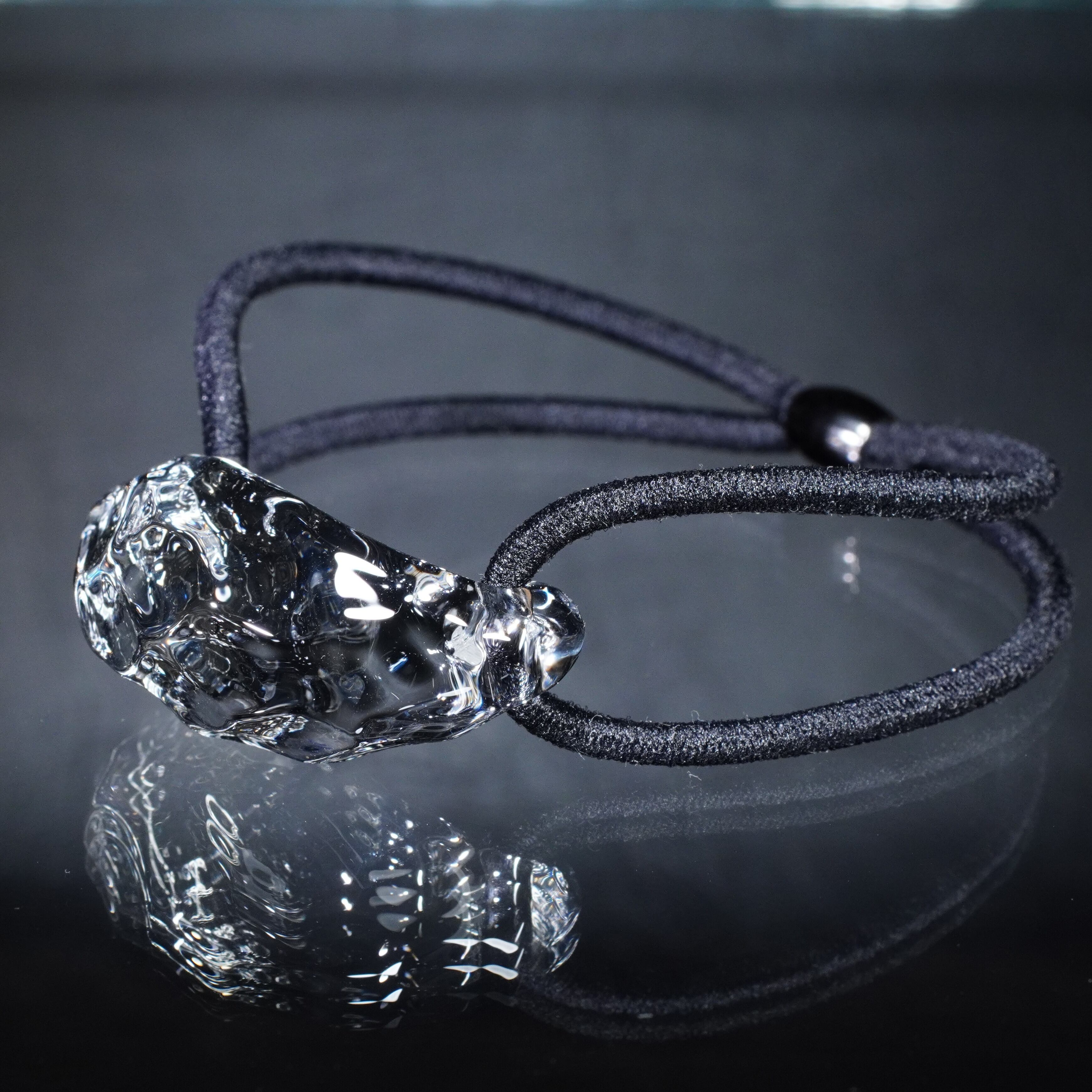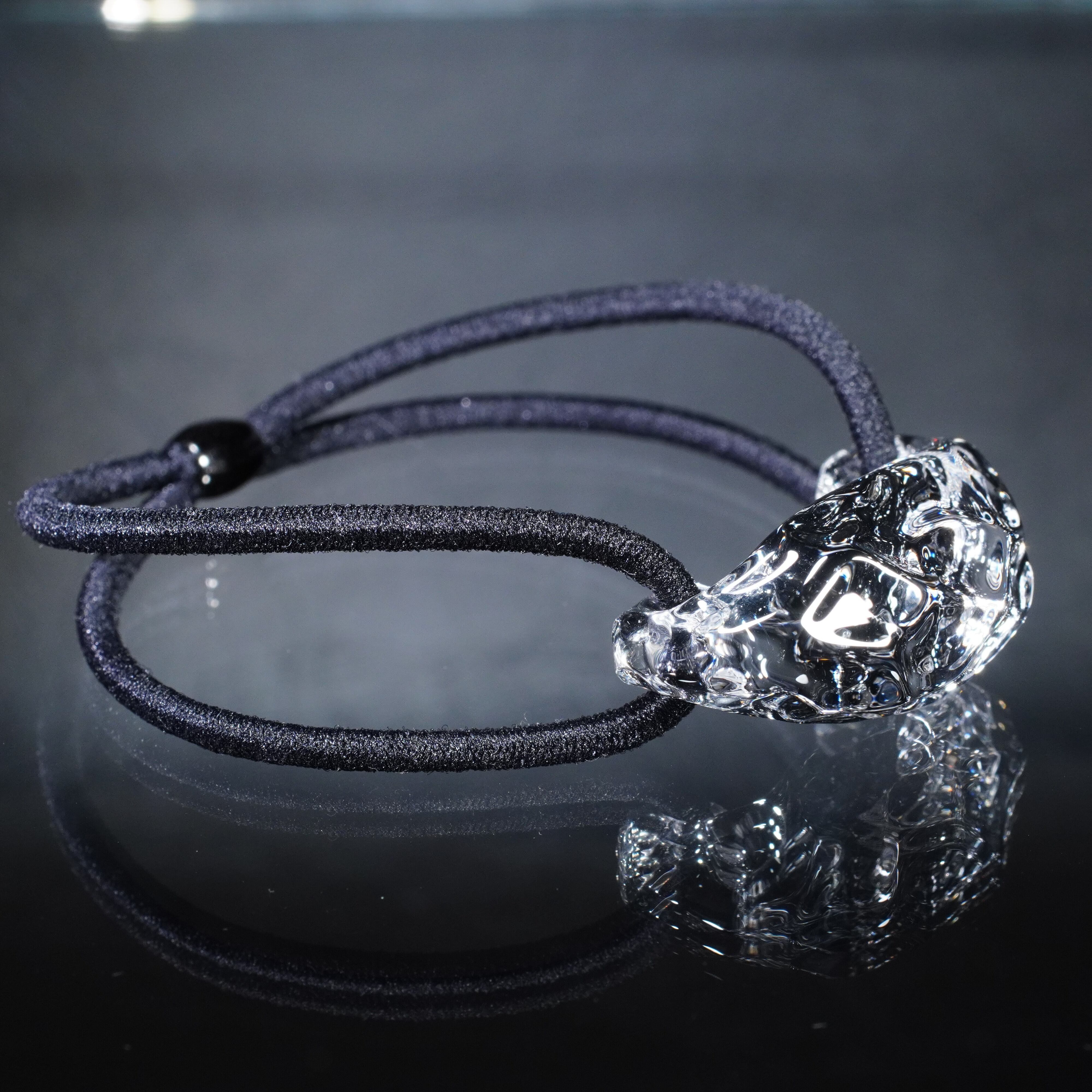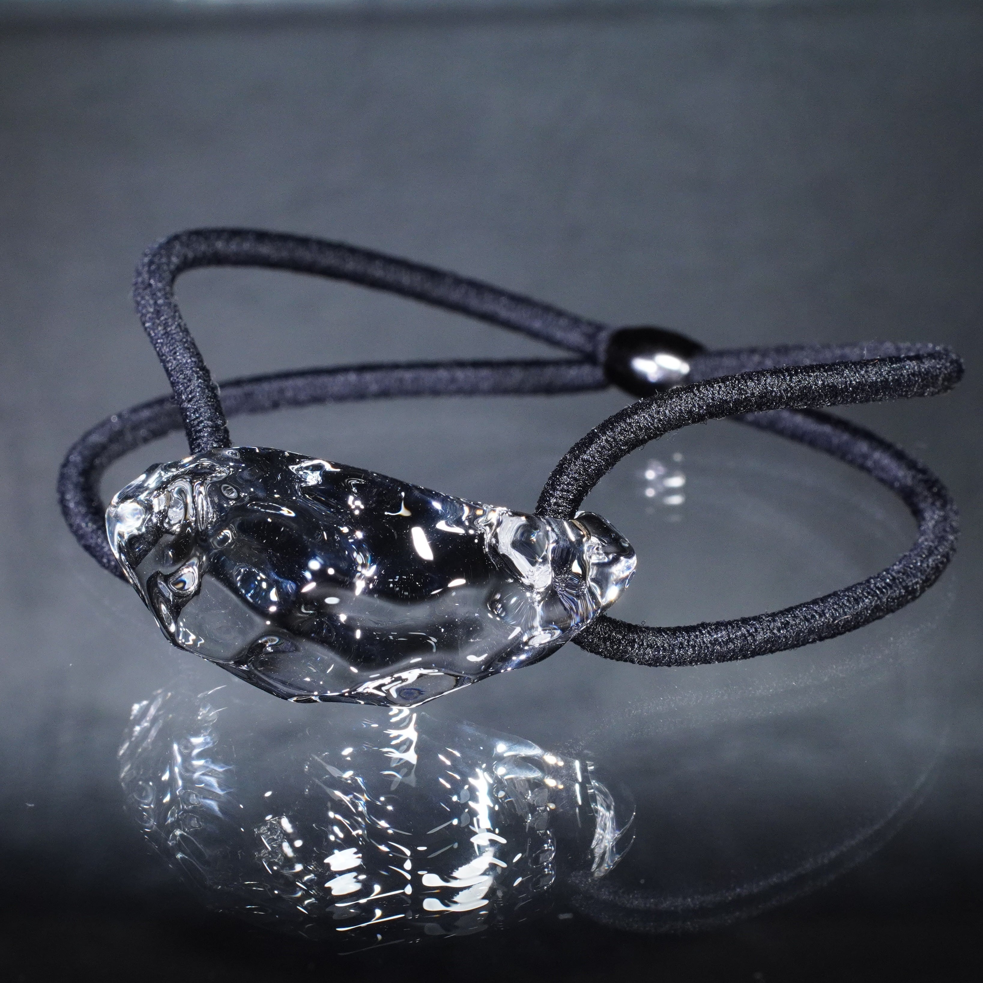 氷をイメージして制作した硬質ガラス製のヘアゴムです。