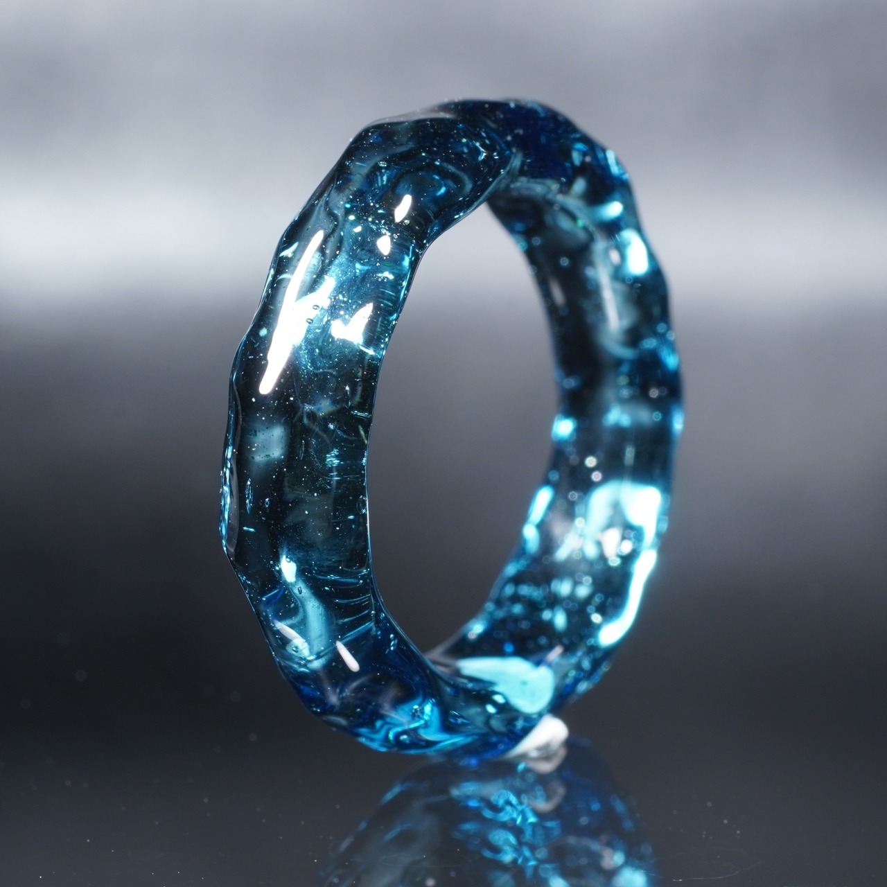 氷をイメージして制作した硬質ガラス(ボロシリケイトガラス)製の指輪です。