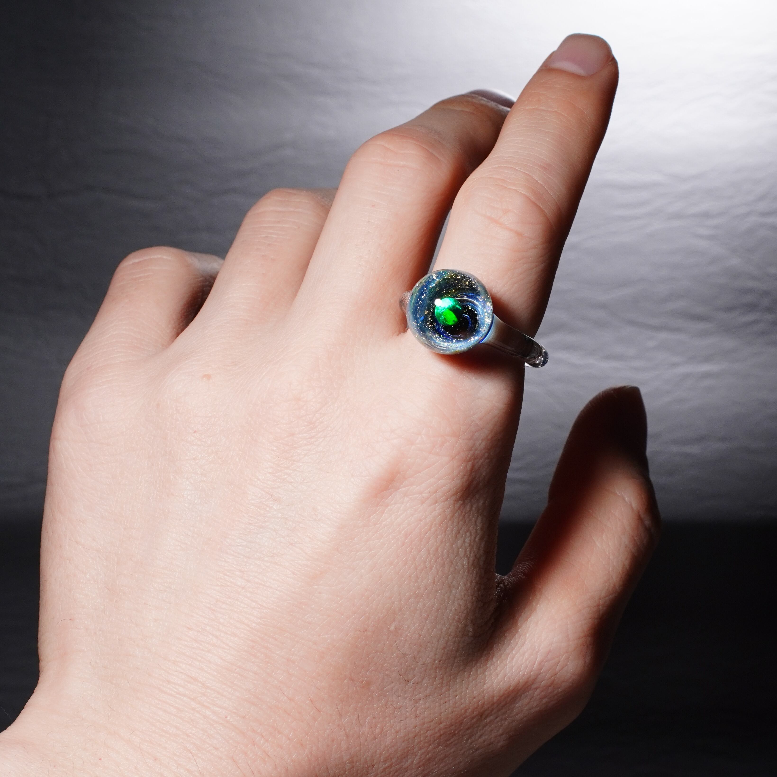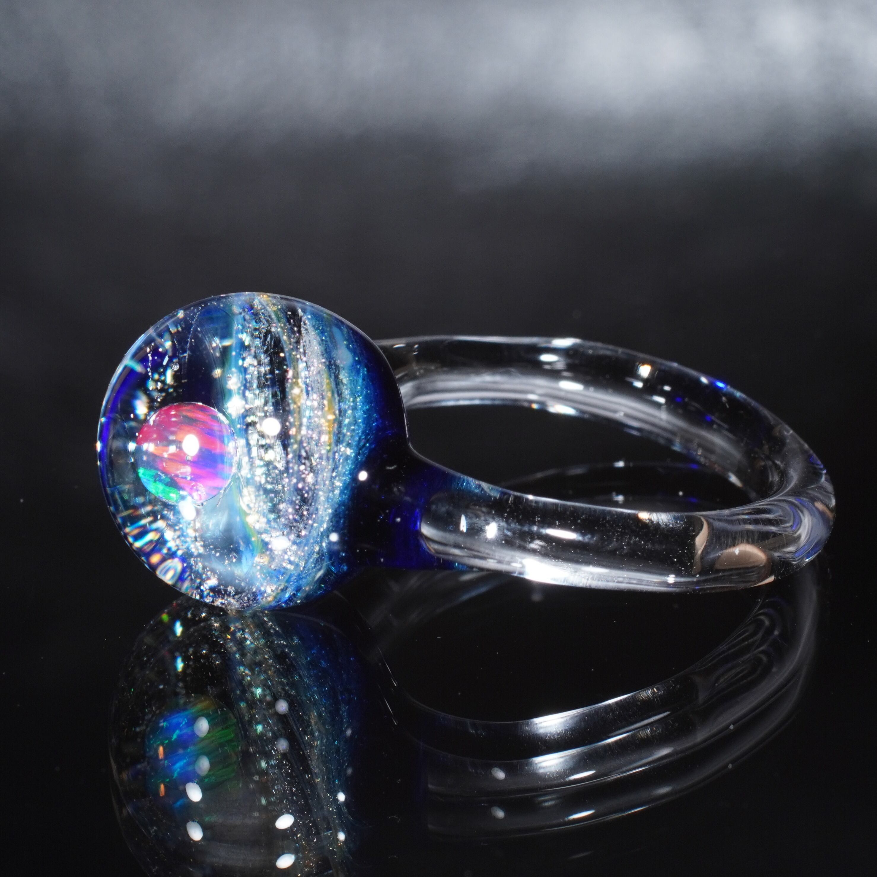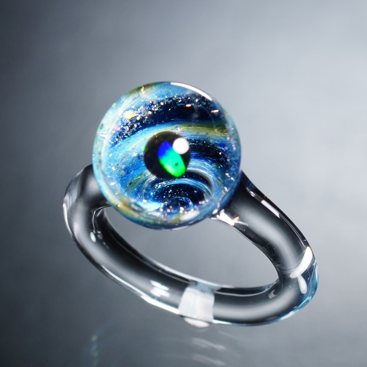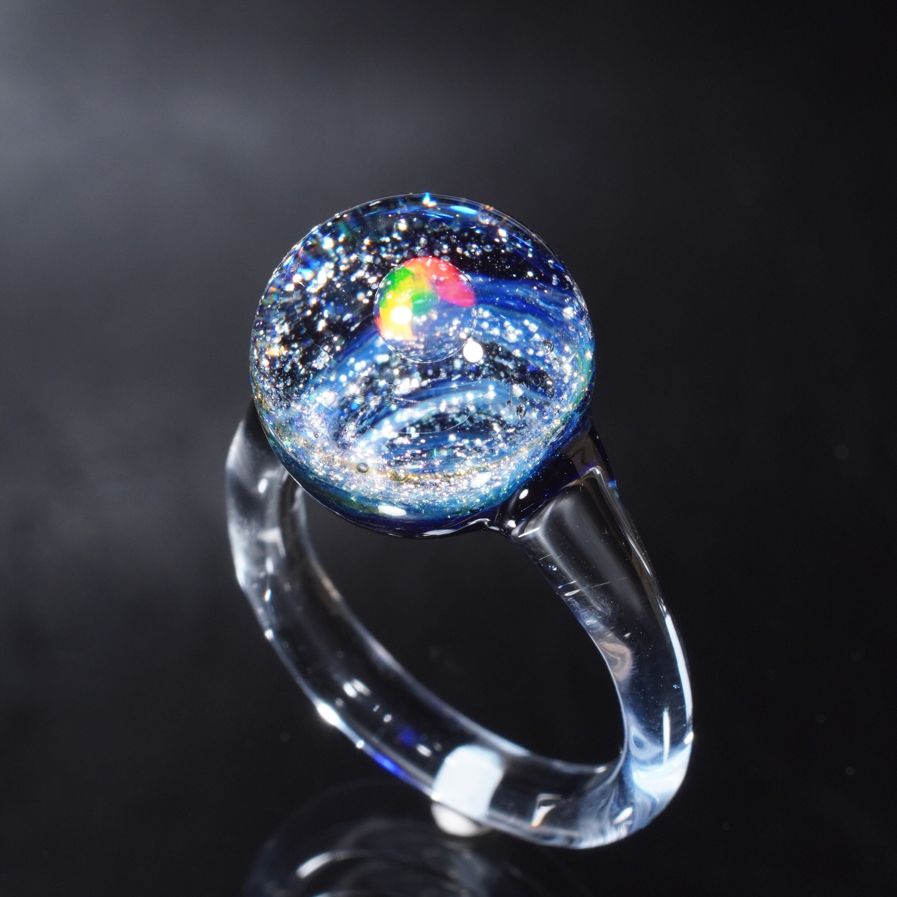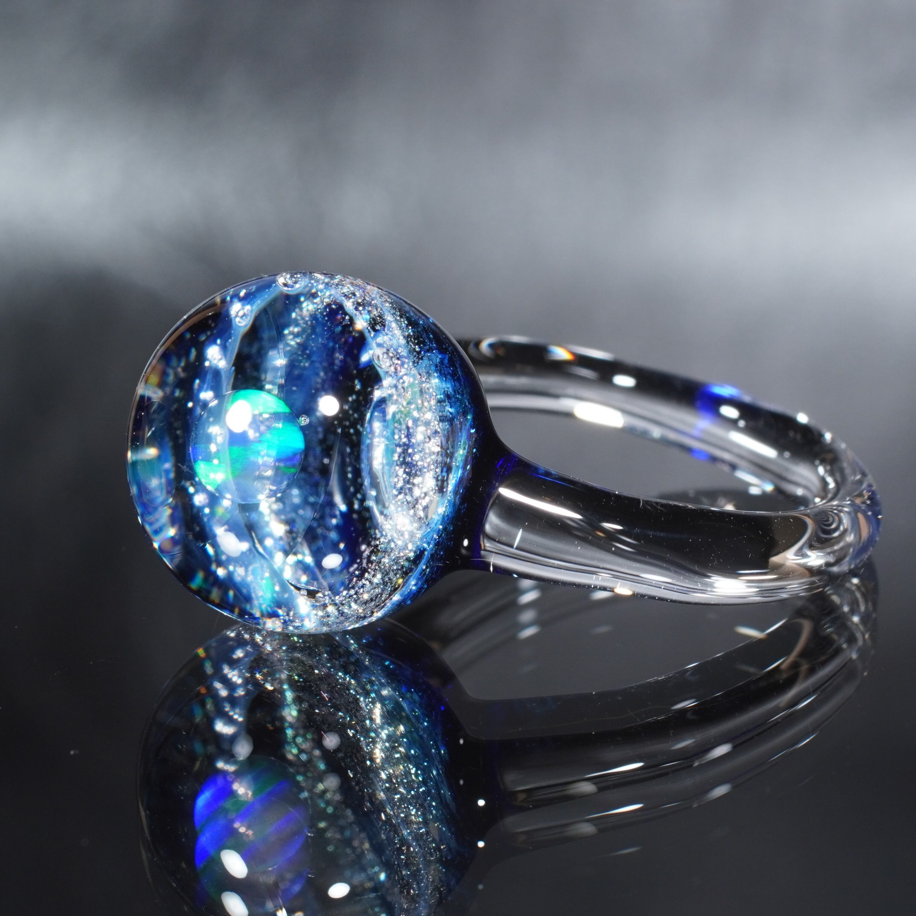 宇宙に浮かぶ惑星をイメージして制作した硬質ガラス製の指輪です。