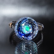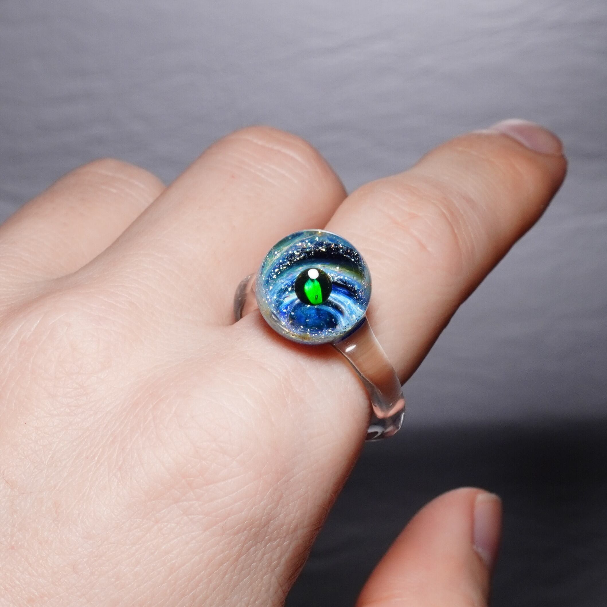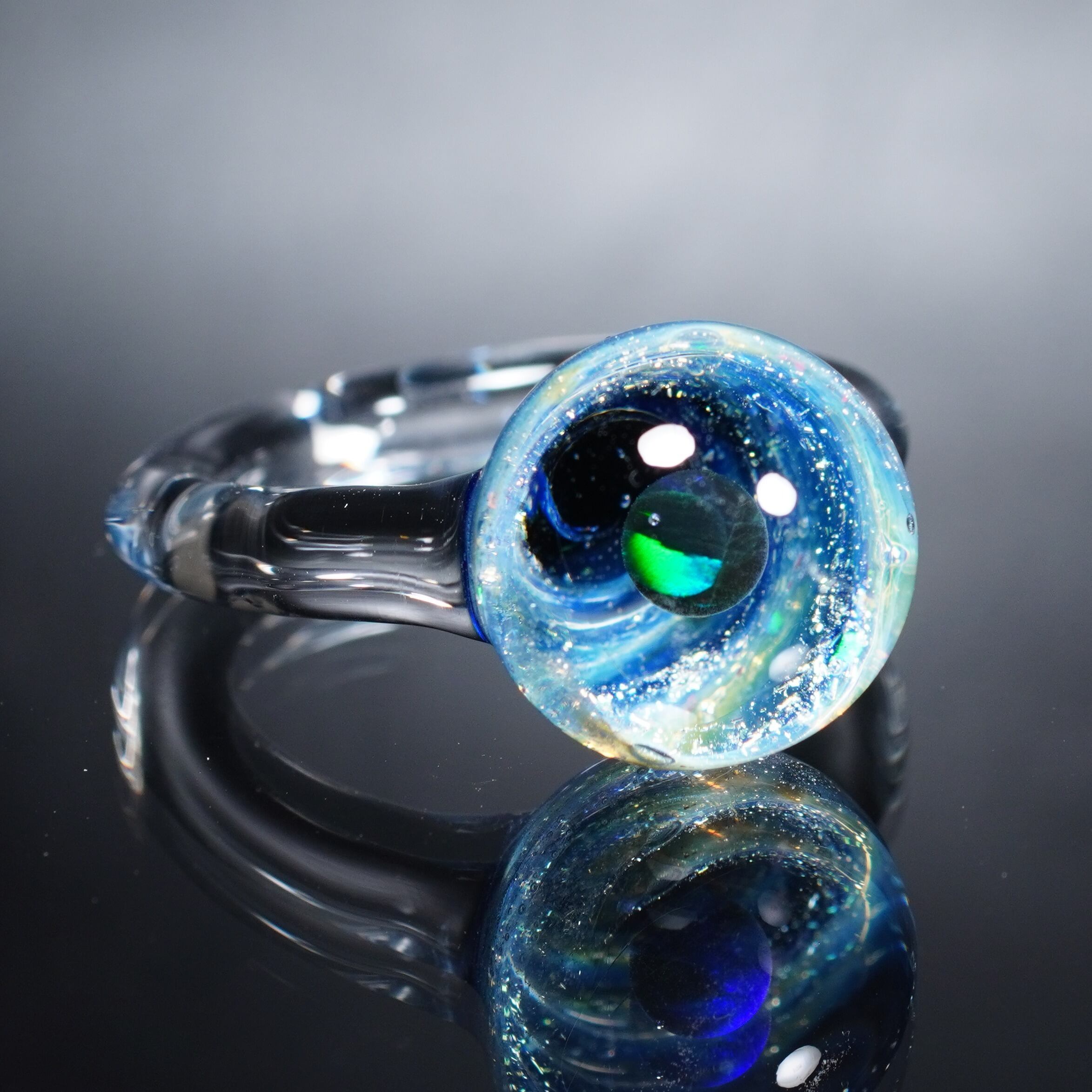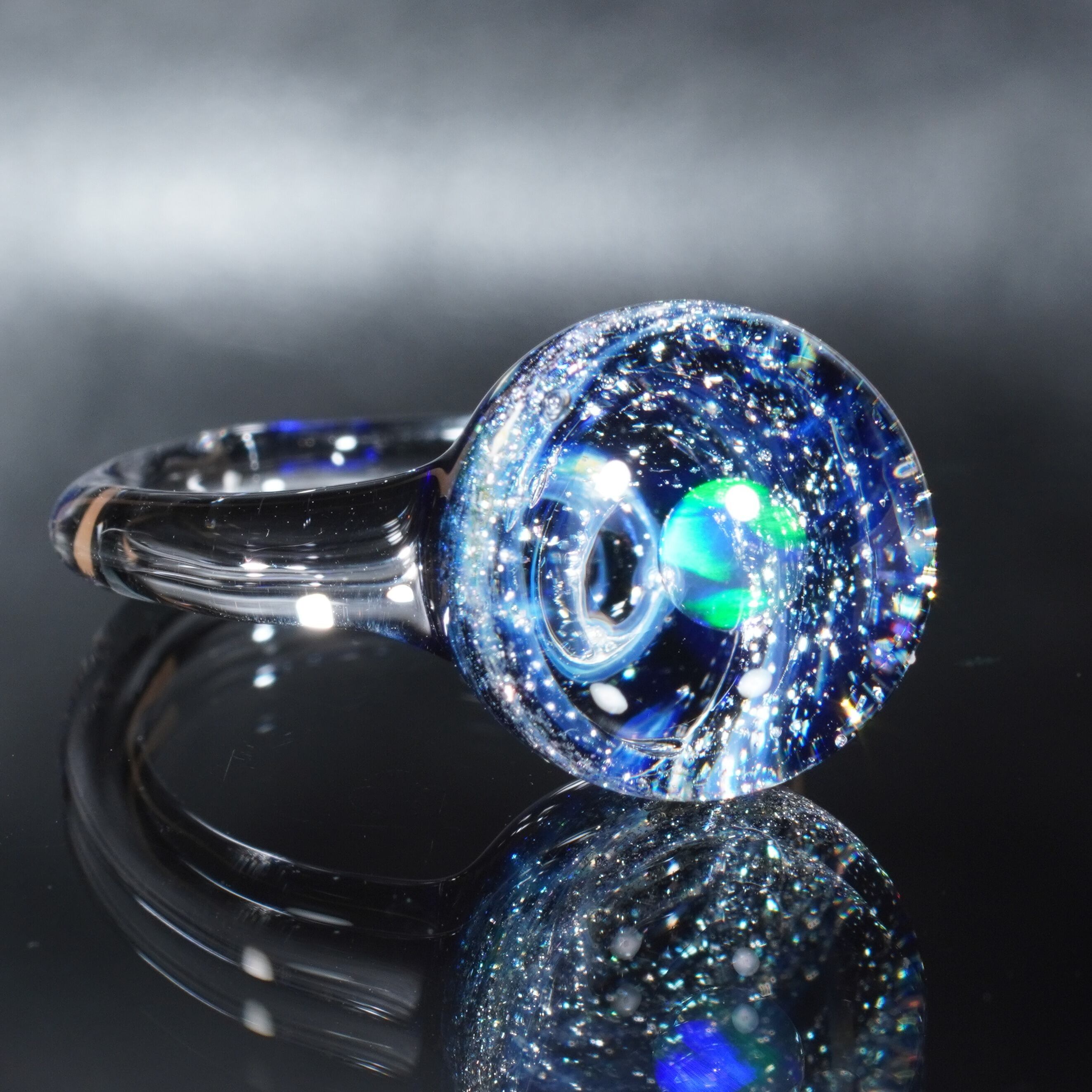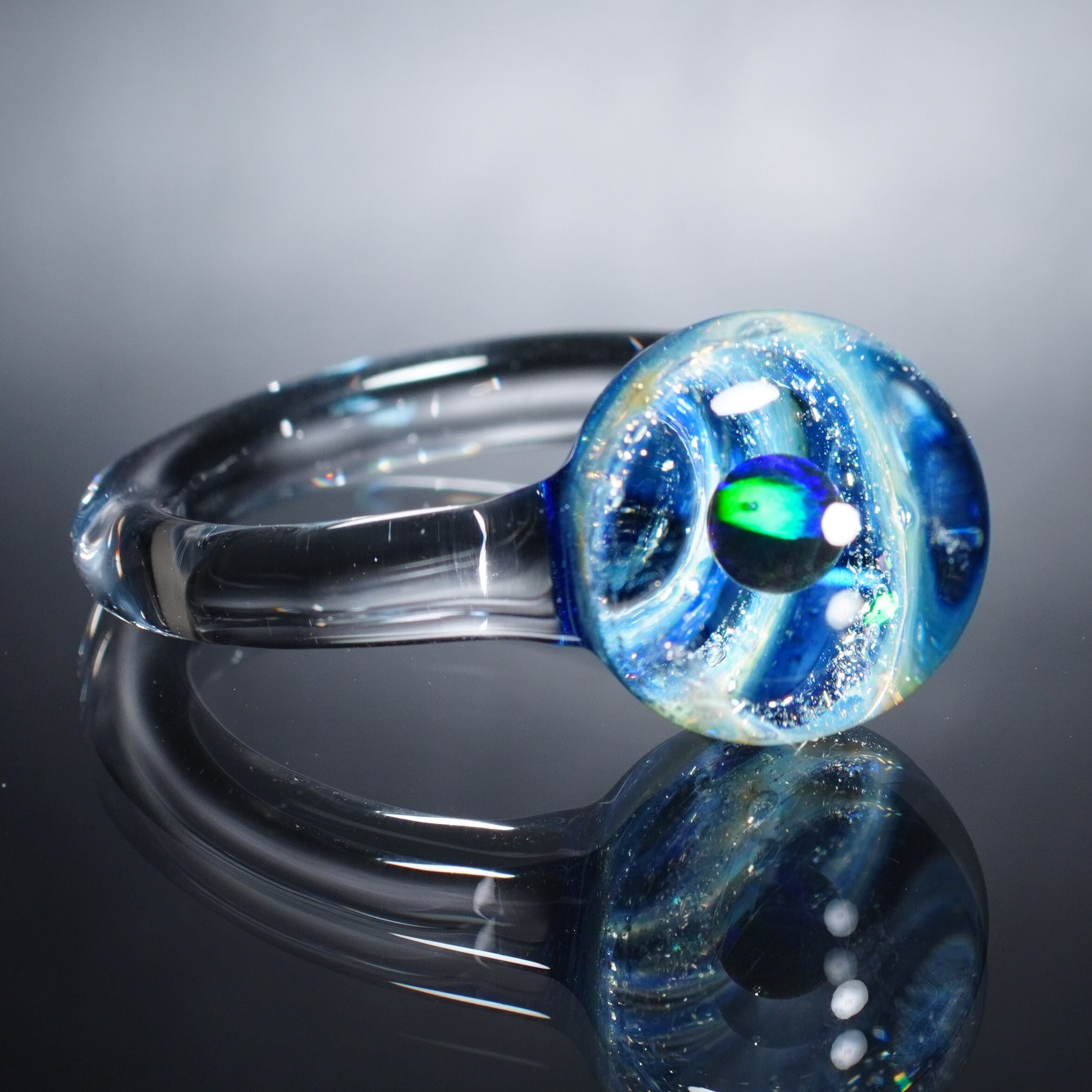宇宙に浮かぶ惑星をイメージして制作した硬質ガラス製の指輪です。