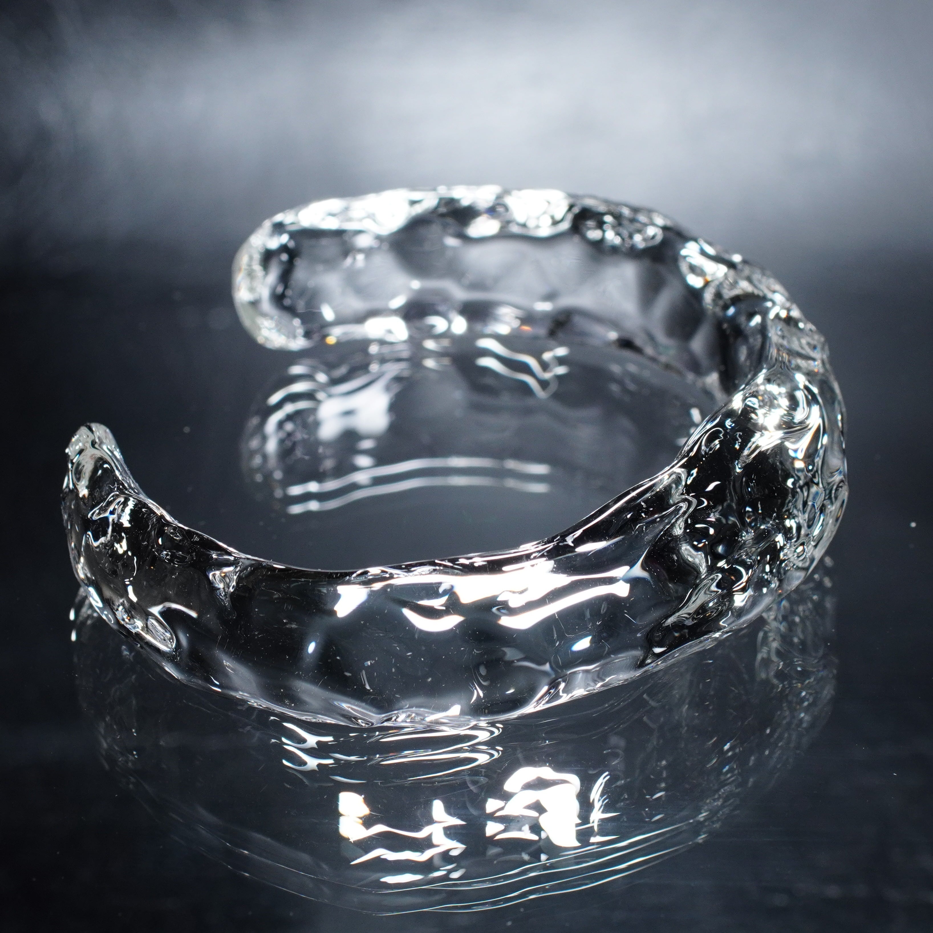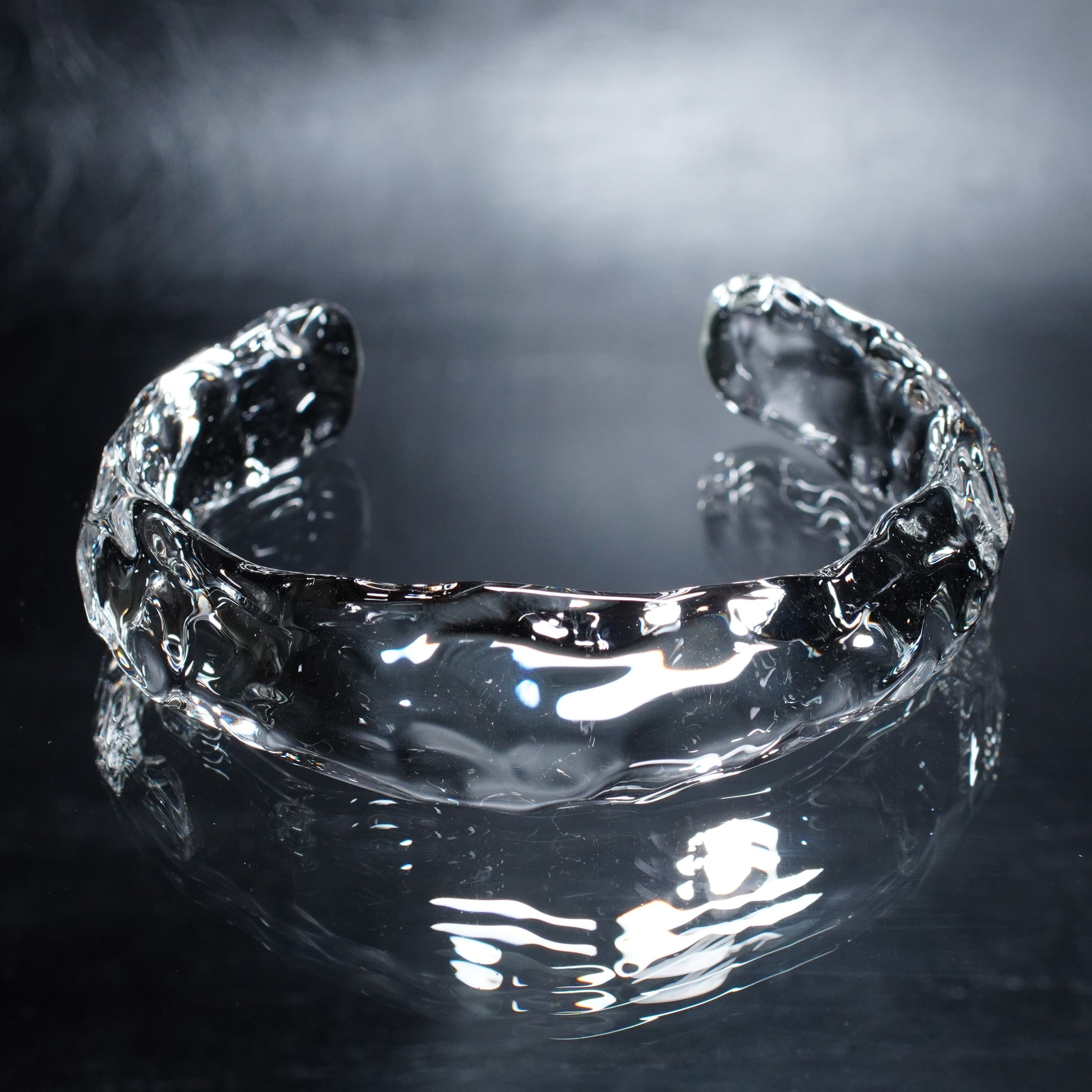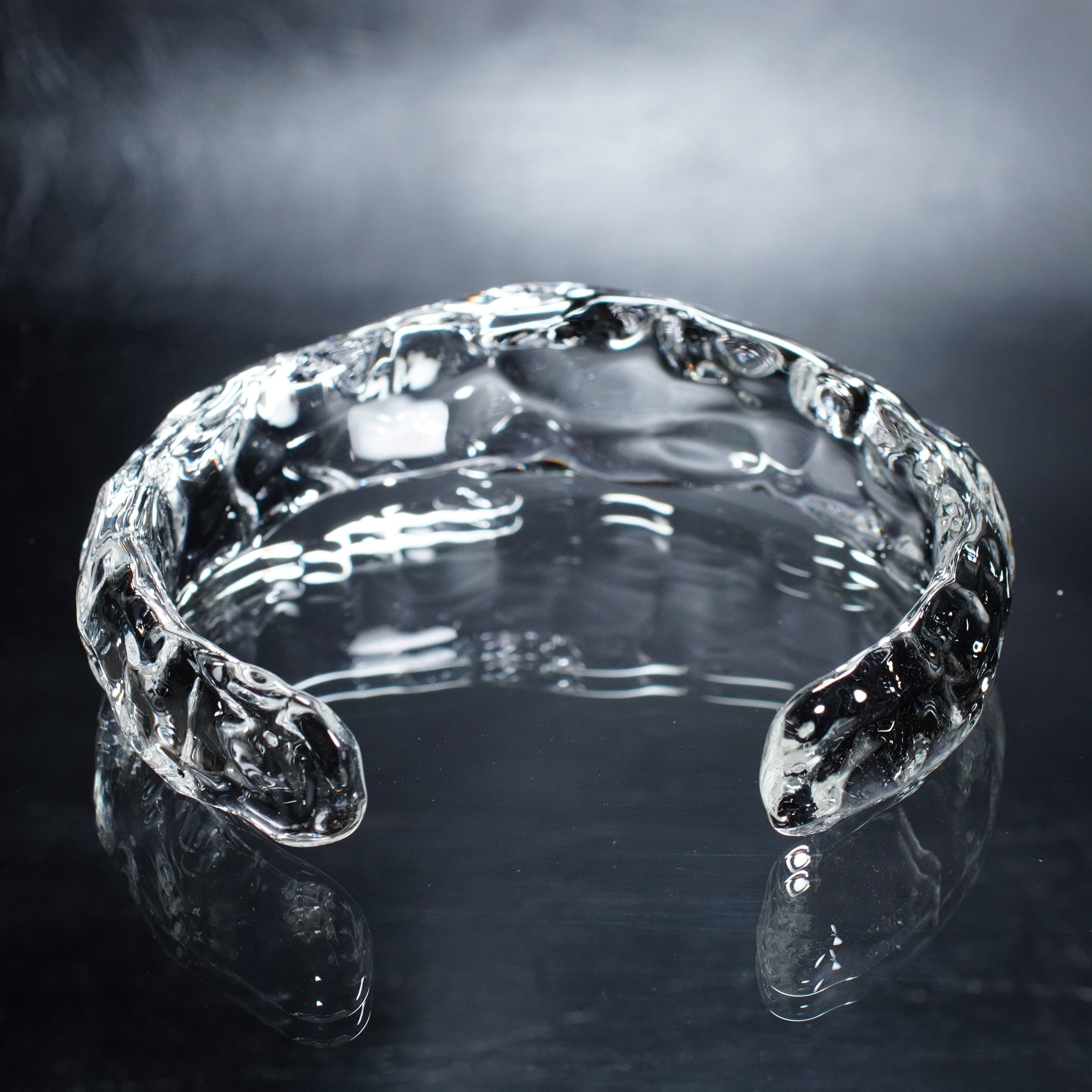 氷をイメージして制作した硬質ガラス製のバングルです。