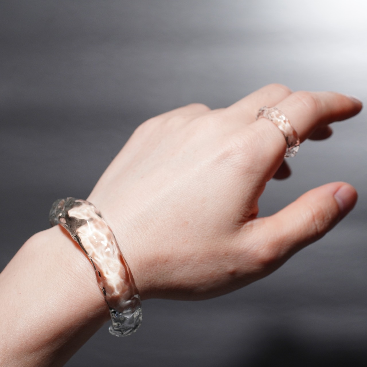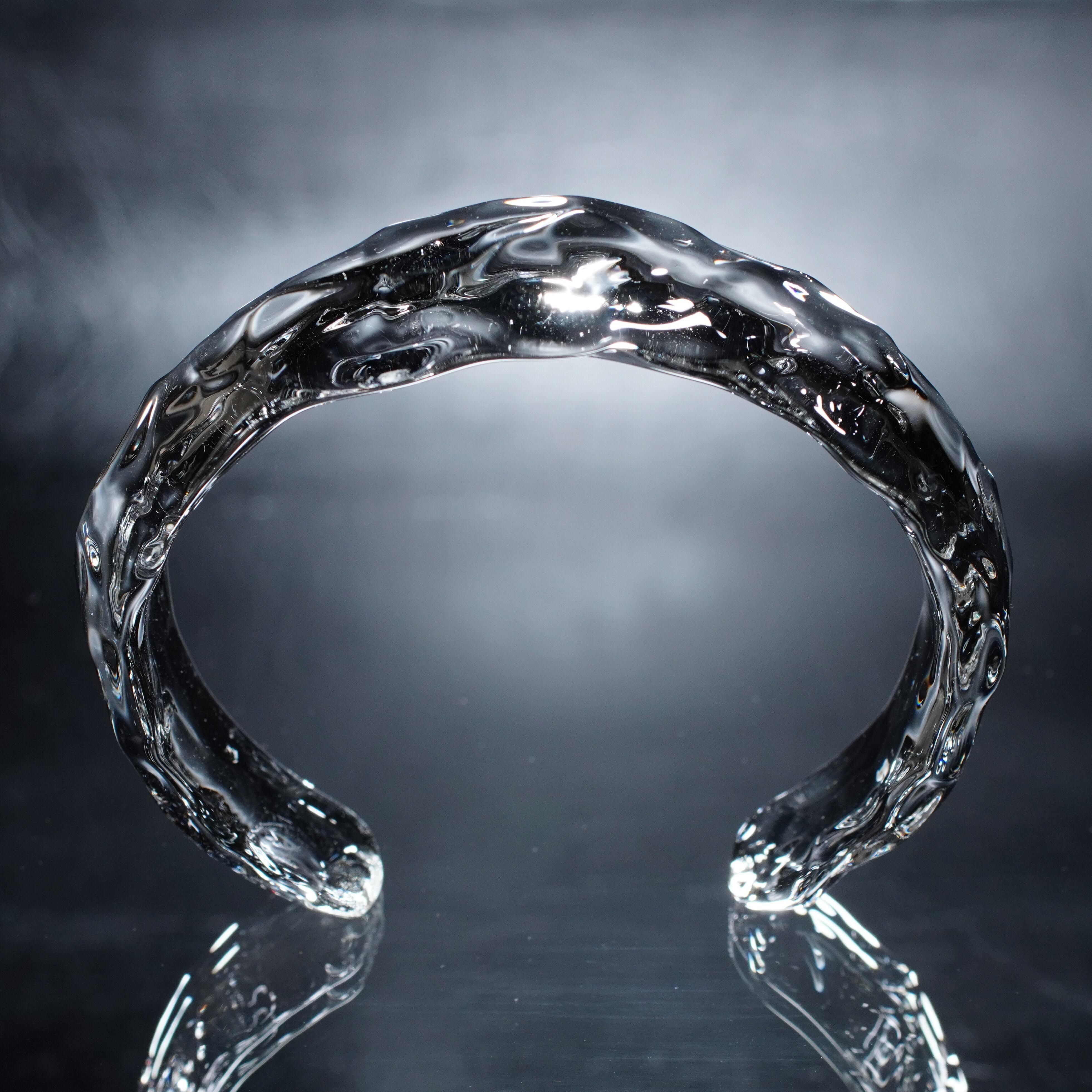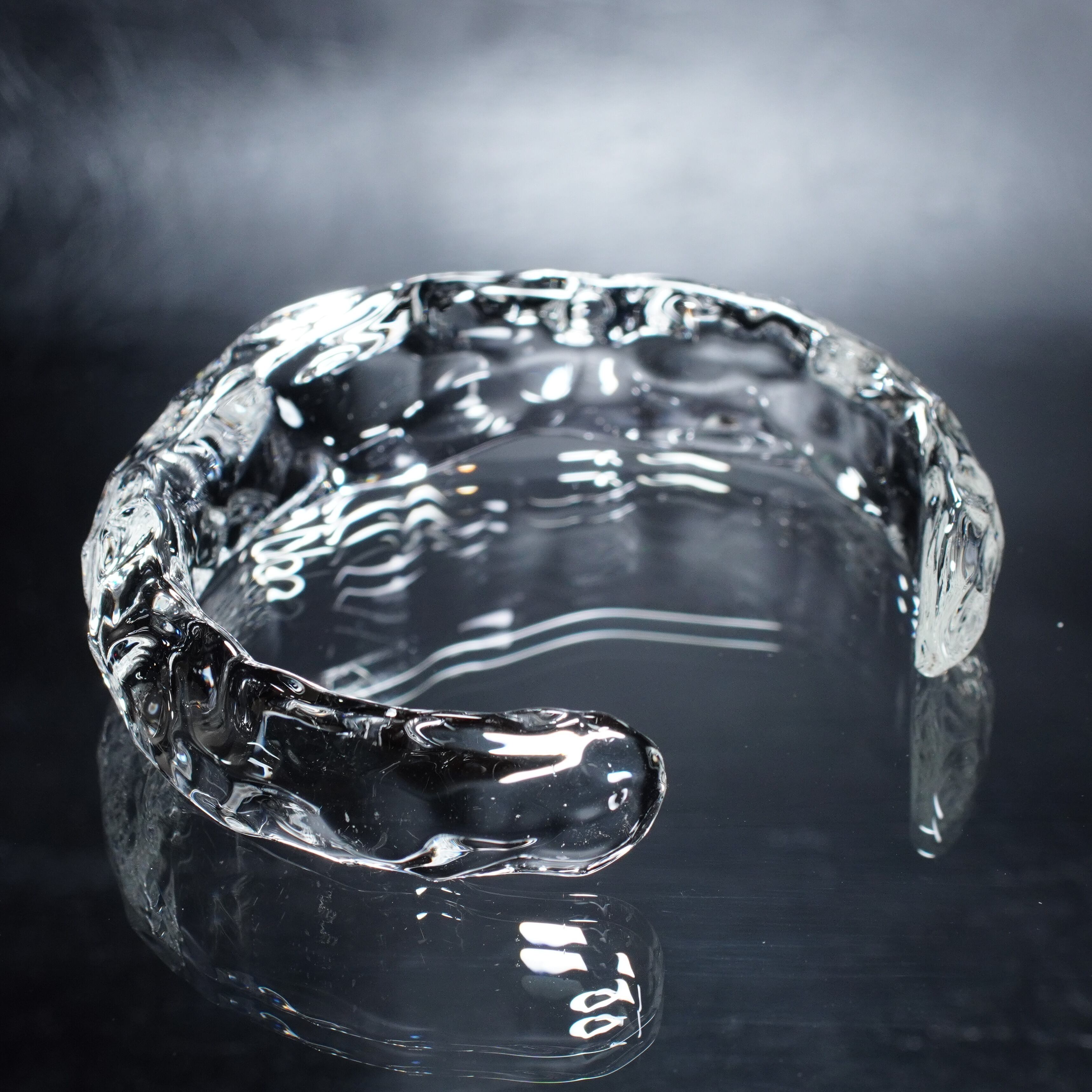 氷をイメージして制作した硬質ガラス製のバングルです。