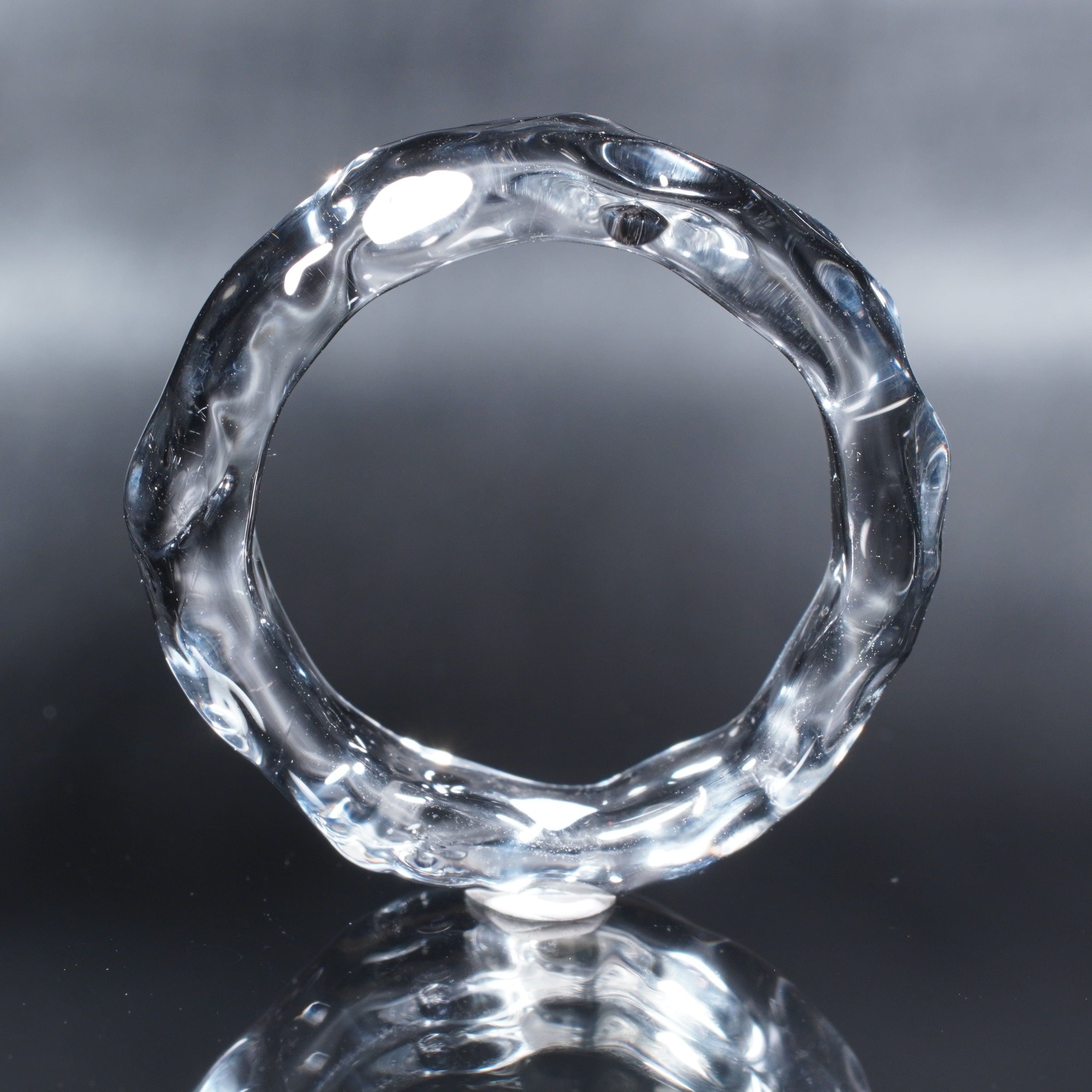 氷をイメージして制作した硬質ガラス(ボロシリケイトガラス)製の指輪です。