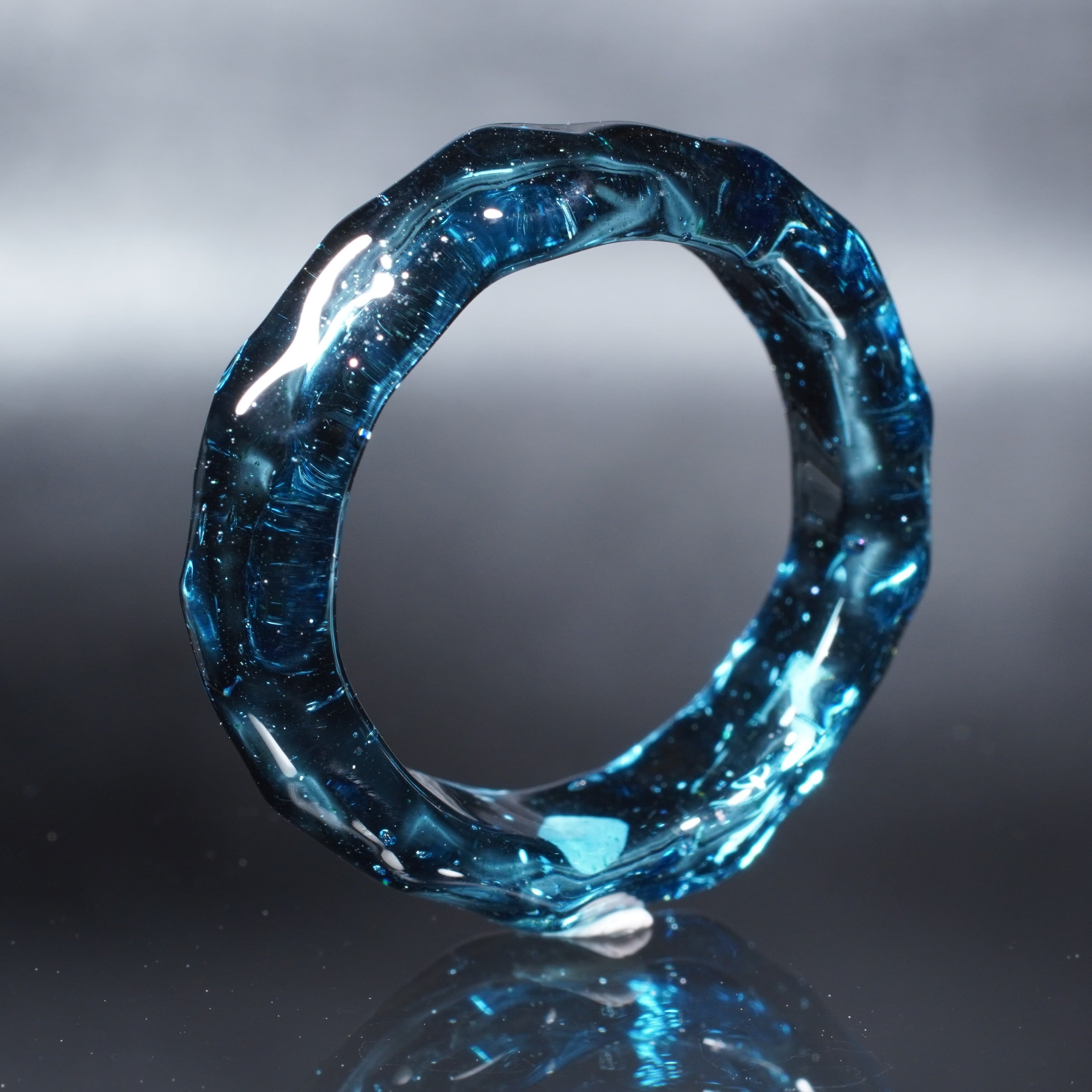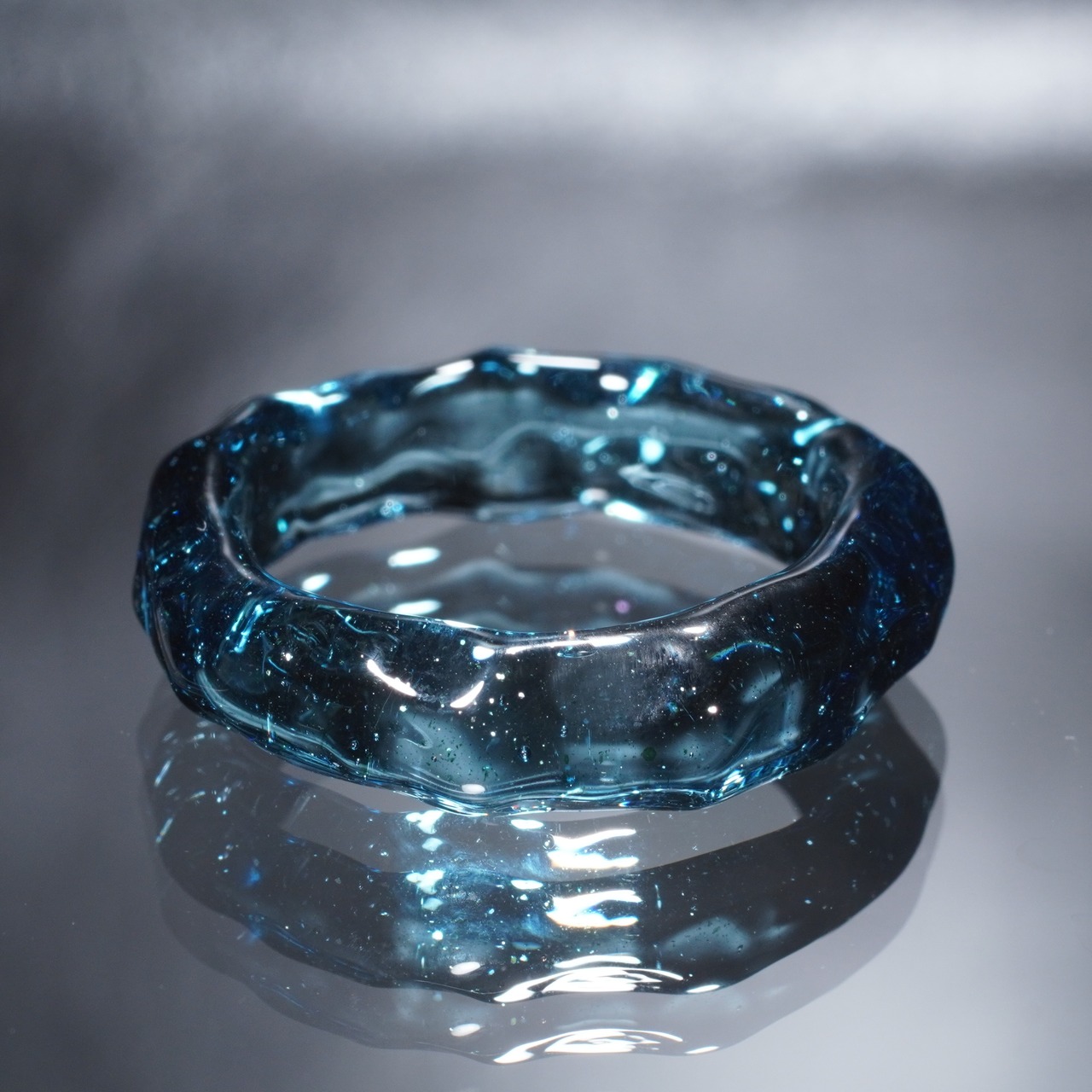 氷をイメージして制作した硬質ガラス(ボロシリケイトガラス)製の指輪です。
