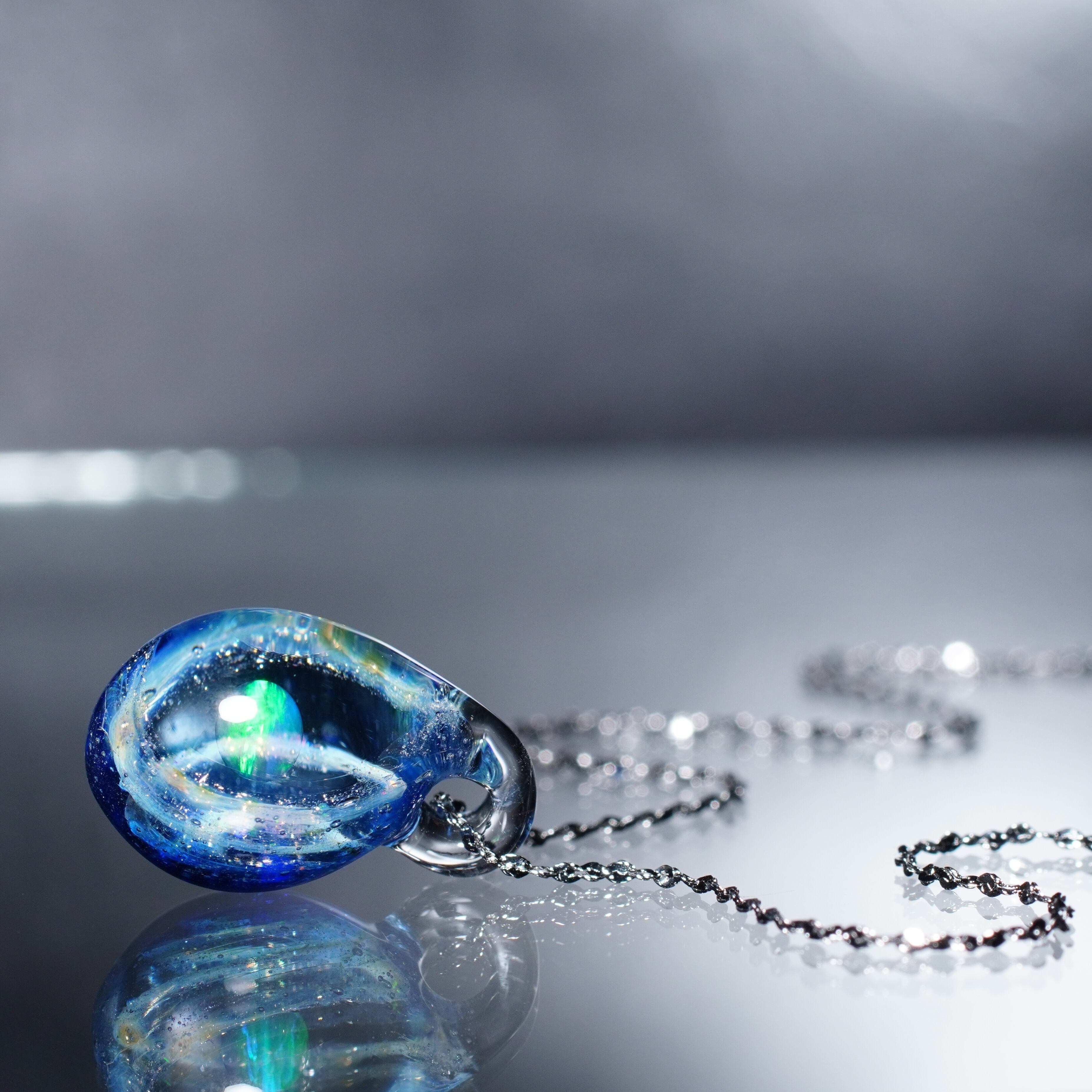 宇宙に浮かぶ惑星をイメージして制作した硬質ガラス製のペンダントです。